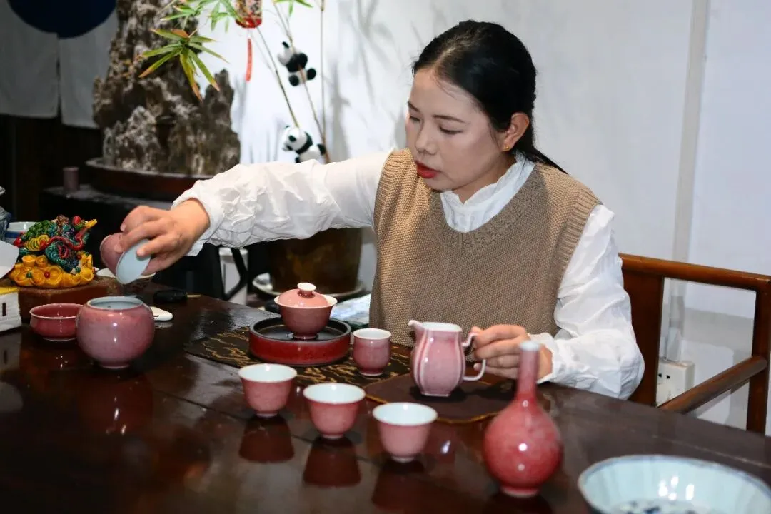 你明明专注青花山水,日常也都在画青花、写青花,为什么店铺里现在上架了豇豆红的茶器?