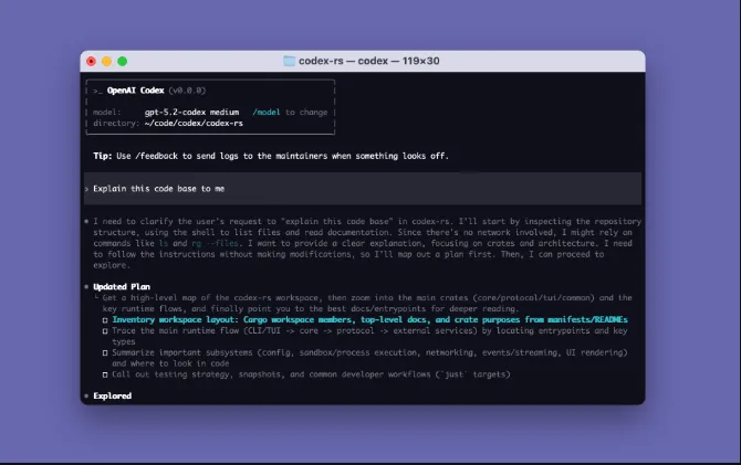 其实我有个不太成熟的建议:如果你是新手,慎用 Codex 。因为你不知道它写的代码对不对。出了问题你也查不出来。等你有能力判断代码质量了,再用它来提效。会更香。真的。我认真的。