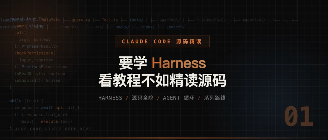 要学 Harness,看教程不如精读源码。 Claude Code 源码精读这个系列将逐模块拆解 Claude Code 的完整源码,带你从零理解一个行业最顶尖水平的 AI Agent 是怎么构建的。