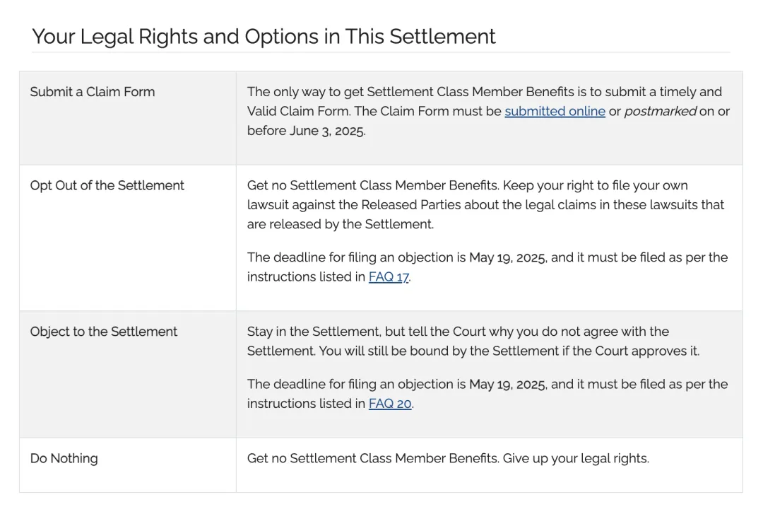 如何索赔:受影响的用户会收到纸质信或电子邮件通知(包含一个notice ID和confirmation code,提交申请时需输入),有任何问题可以邮件联系Questions@KatzPrivacySettlement.com