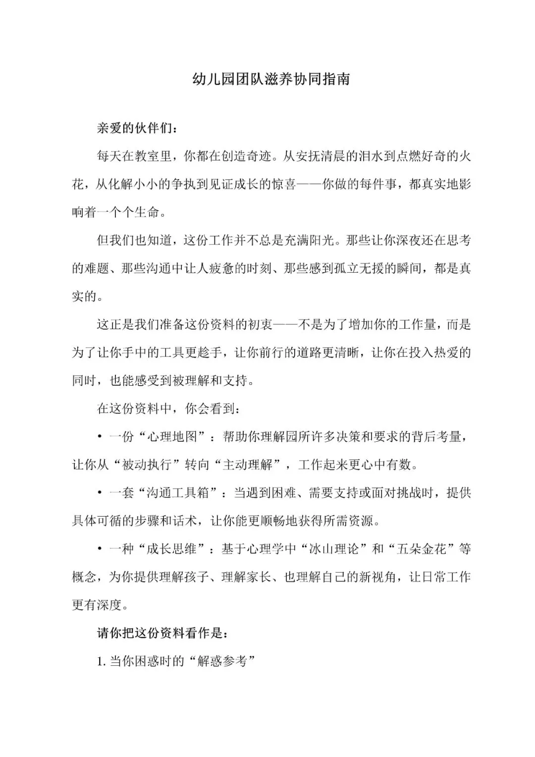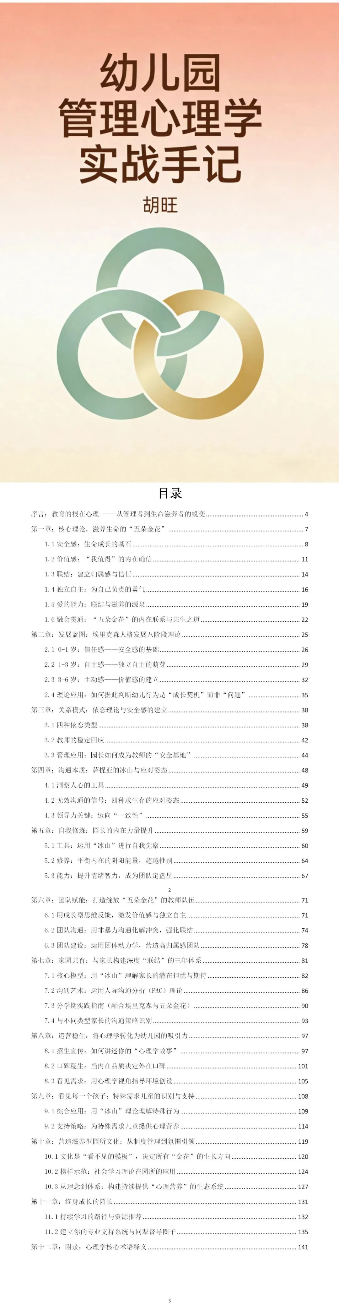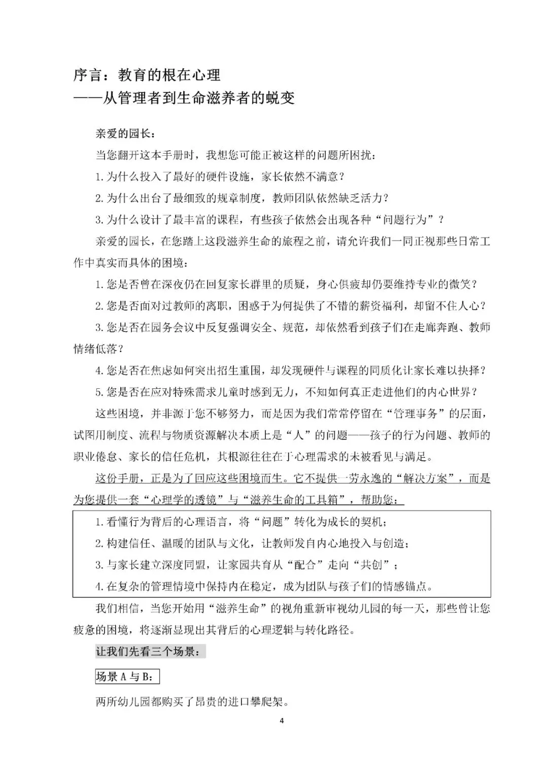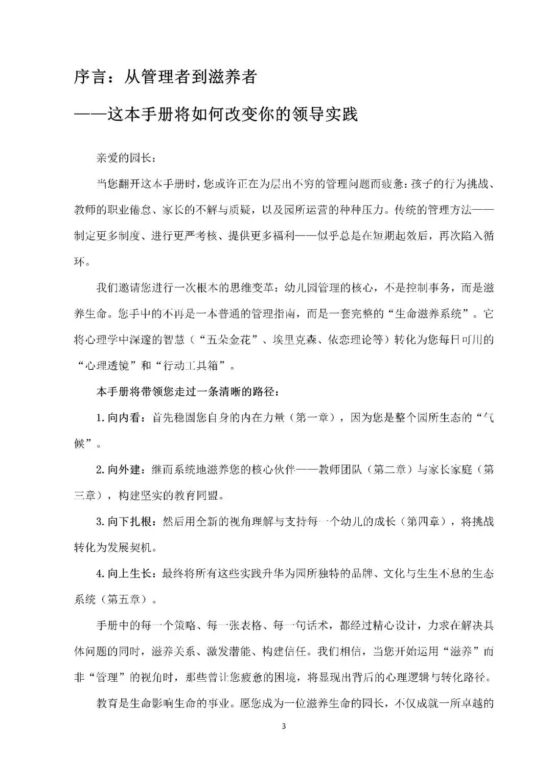幼儿园经营管理系列资料结缘说明 幼儿园经营管理系列资料结缘说明 幼儿园经营管理学习资料 —— 幼儿园招生稳生训练营网课视频 —— 适用于幼儿园管理者职业化运营能力提升 【部分课件内容】 幼儿园管理心理学资料 —— 约12万字,源文件方便修改使用 —— 适用于幼儿园整体运营效果提升 【部分资料内容】