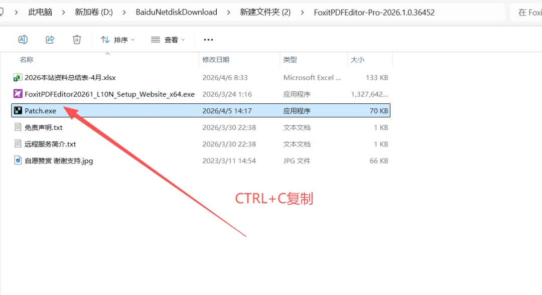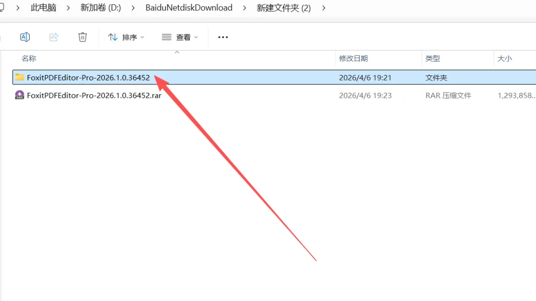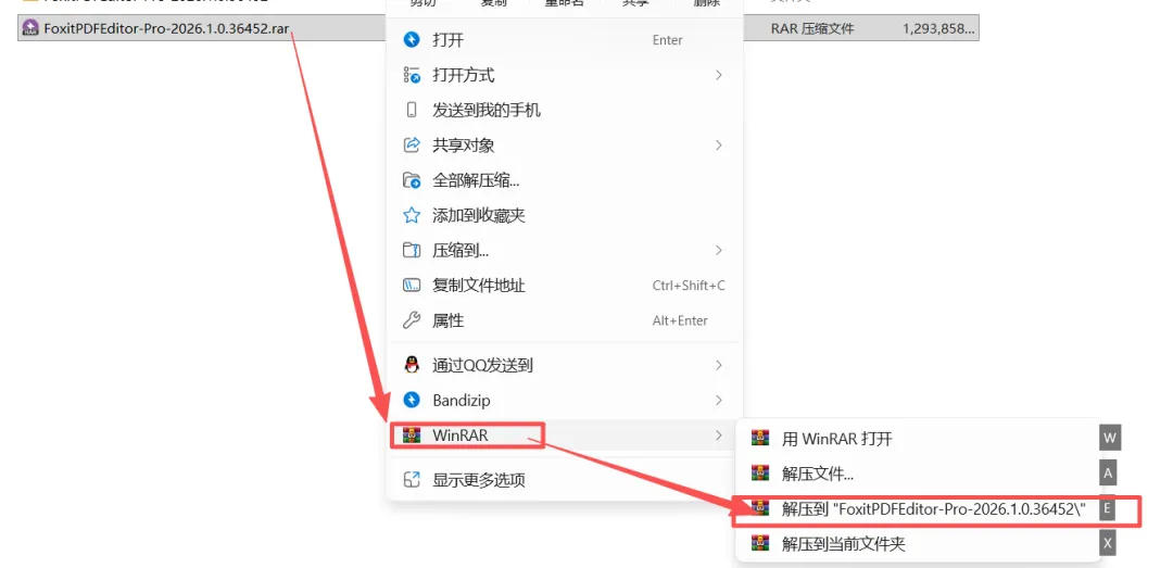 1.解压【FoxitPDFEditor-Pro-2026.1.0.36452】压缩包。