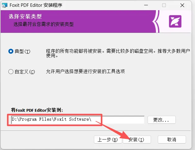 5.修改安装位置后,点【安装】。耐心等待软件安装过程。