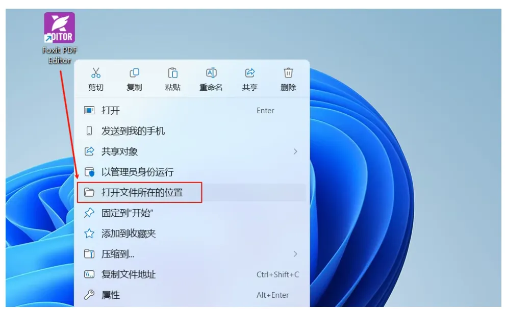 8.右击桌面快捷方式,点【打开文件所在的位置】。