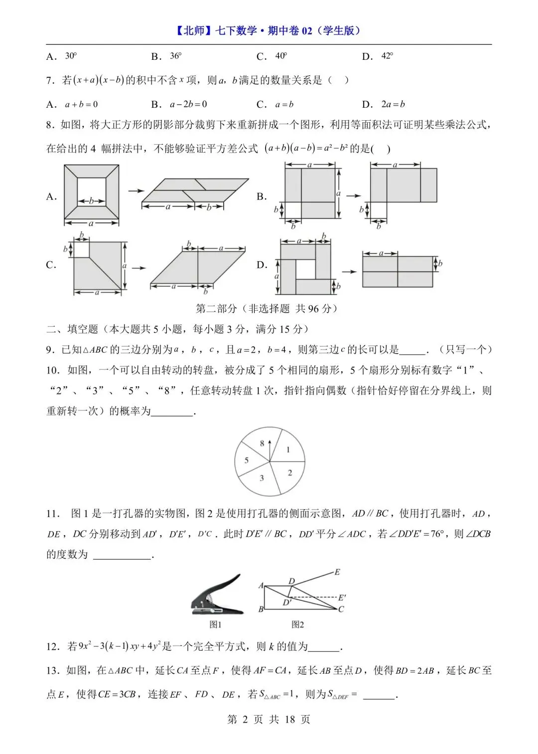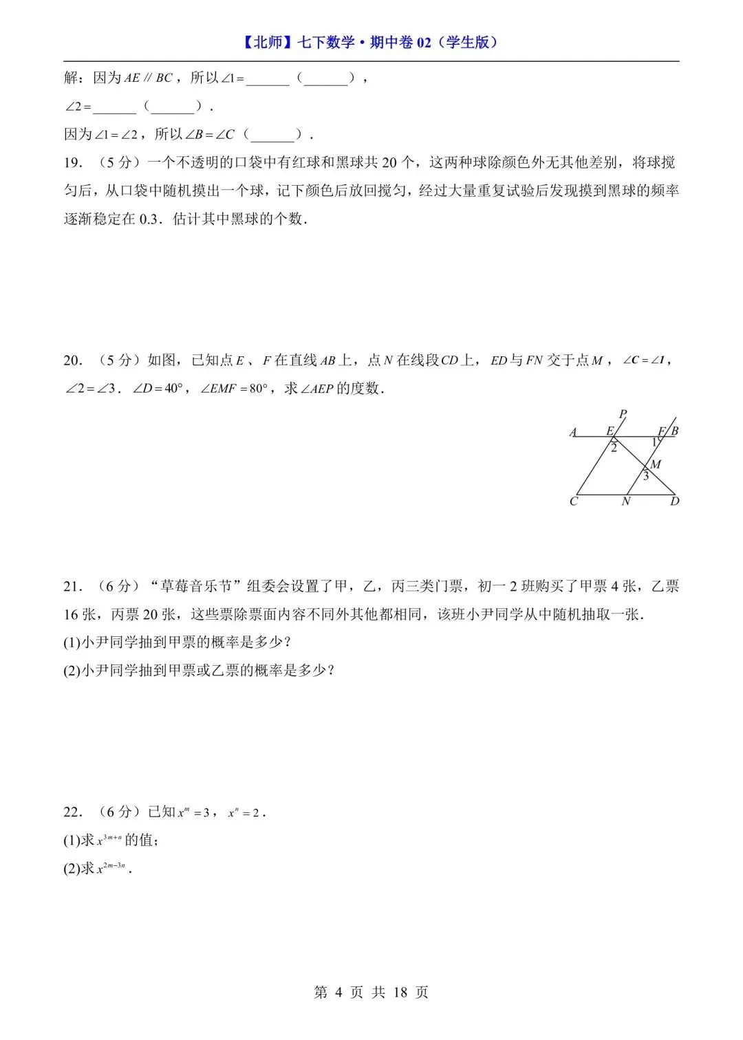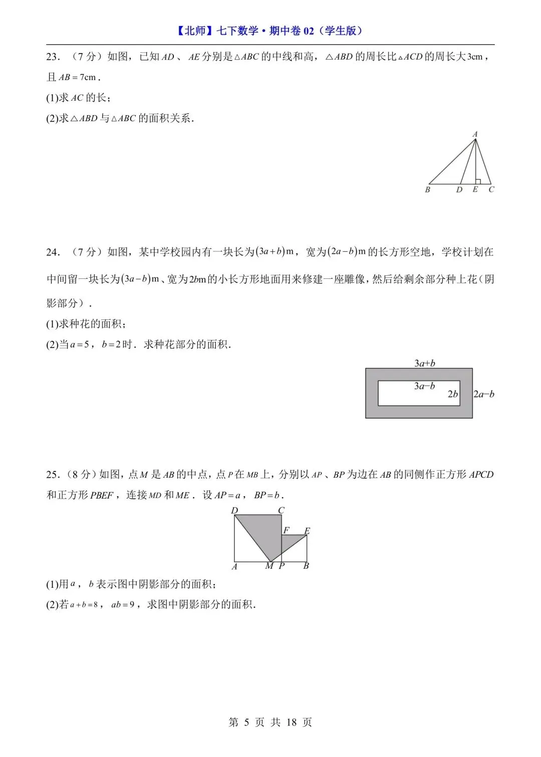 七年级下册数学期中测试卷含答案可打印