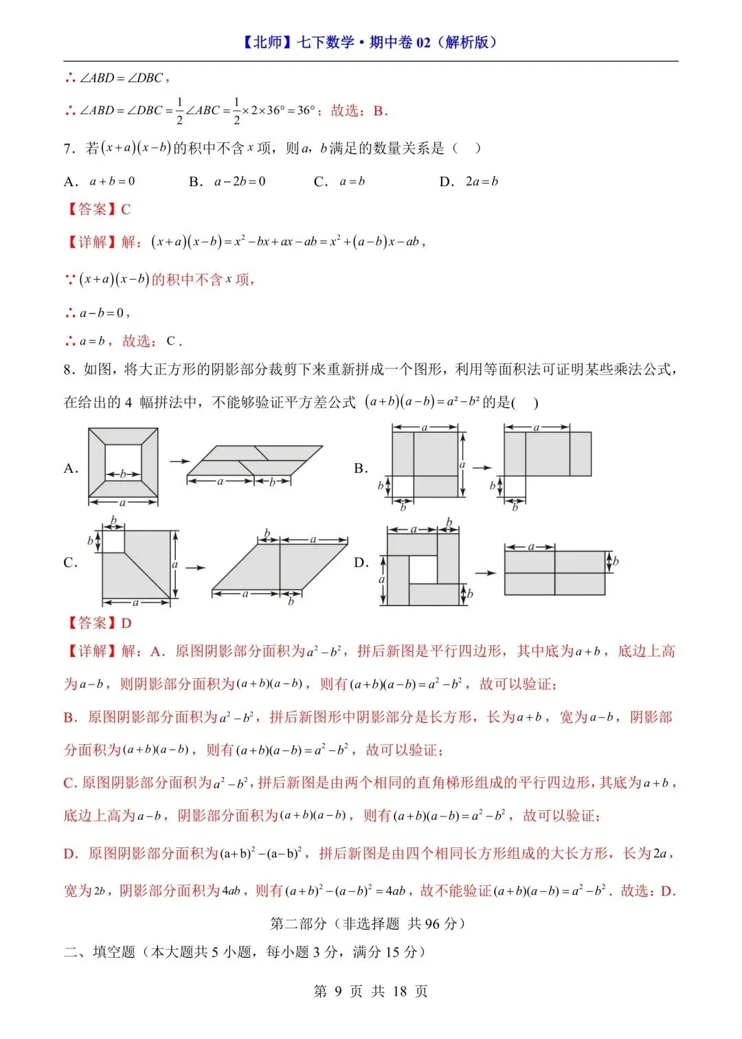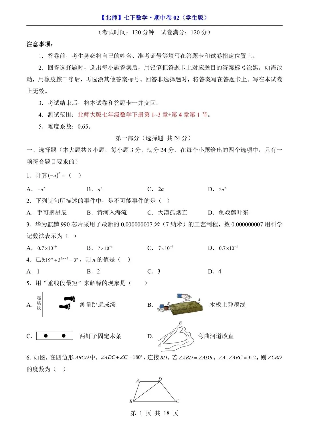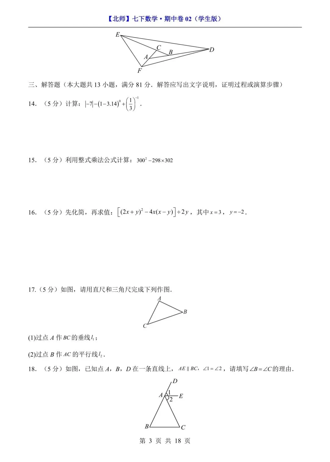 七年级下册数学期中测试卷含答案可打印