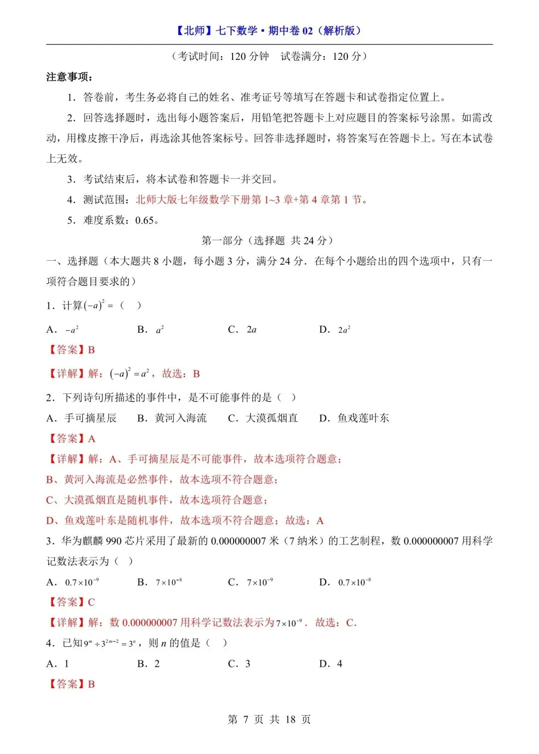 ②:在公众号“发消息”,输入:【七年级】