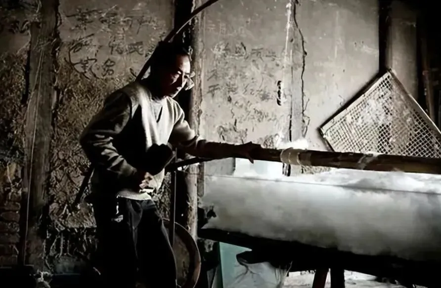 这个拉着大弓的行当叫弹棉花匠,没错,冬天厚被子少着谁都不行,弹棉花的劲儿真不小,门口空地一坐下,弓子一收一放弹得嗡嗡直响,旧棉花全让他抖松了,家里人合在一边挑棉结,师傅一边薅,一边嘴里不闲着,“棉花这料可结实,用了几年再弹还顶用”,棉被盖久了像一条板子,弹一遍就又蓬松又暖和,外头晒过太阳味道混着棉絮香,这才是老被子的舒坦。
