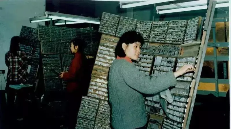 图里堆满格子的地方,就是铅字排版员上班的世界,这活靠的不是力气,是眼力劲和耐心,木格里码着几千几万个铅字,比火柴头还小,排一整版报纸杂志全靠一只手一颗心,捡错一个就得重新折腾,排好了一拿出来,说不定哪块还得重新磨光。