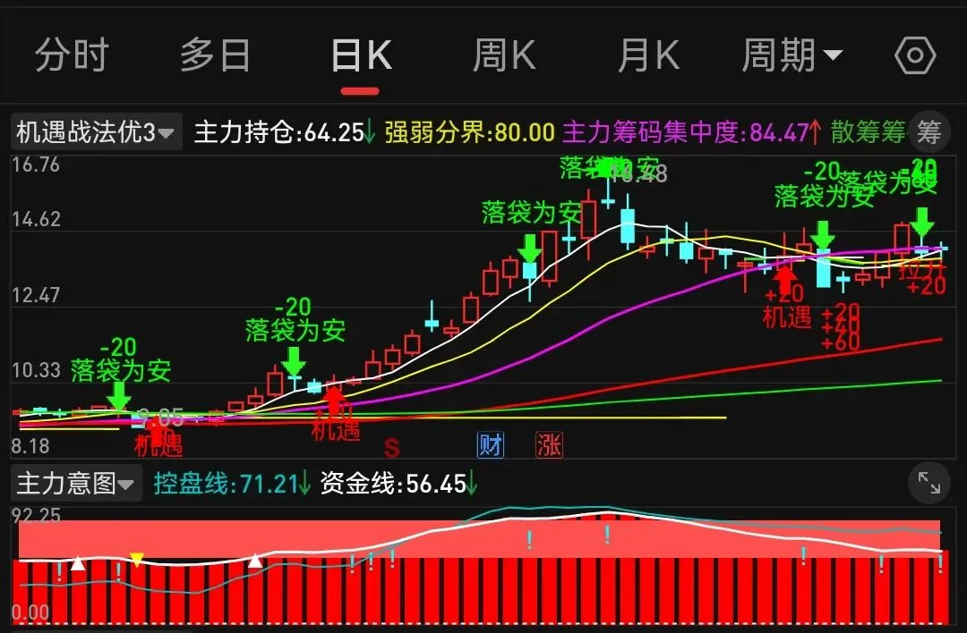 资金线(白线) 连续白色曲线 主力真实意图综合得分,核心决策依据