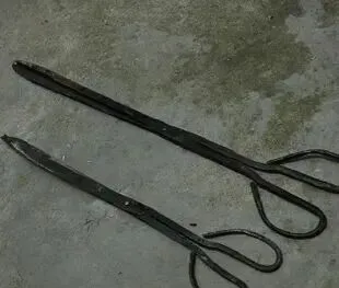 这个细长家伙叫火钳,黑铁的皮子,头两边细得像针,拢在一块能夹住大块柴火,烧蜂窝煤夹着用也利索,小的时候没烧过大锅灶,自己只会夹蜂窝煤塞炉子,“别把煤球夹碎了,一地渣都是白费”家里人叮嘱,尤其碰上新粉的煤球,更容易一夹就散,每每出岔都得被念叨两句,现在家里见火钳的也少,取暖全靠电,有这个东西都只能挂在门后头落灰。