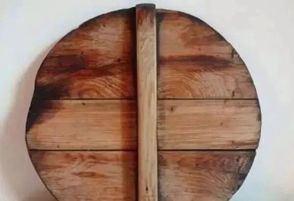 这个圆圆的榉木东西叫锅盖,家里烧大锅饭的必备,锅盖得自己用木板拼好,中间栓着横把,蒸粮食、煮玉米,锅盖一盖不跑气,炊烟就那么从缝里钻,小孩去厨房瞎转,偷偷掀锅盖老被骂,现在想起来那股“热气扑脸”的场面还真难再见,以前人人都识锅盖厚薄,那年头家家户户自己做,现在到处都是金属盖子,旧木盖只能靠墙一放。
