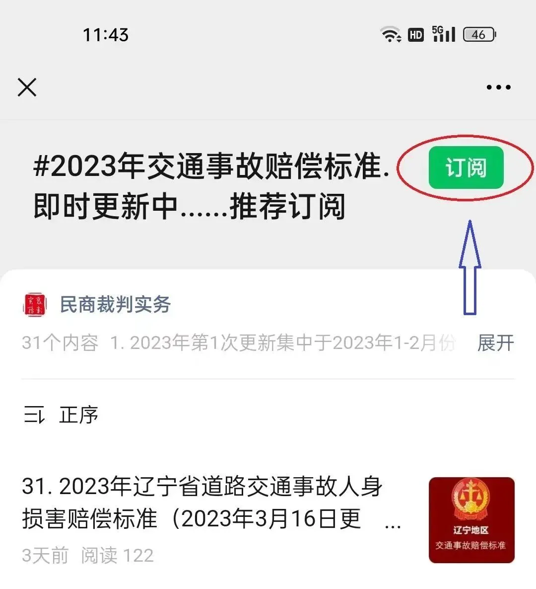第一步,可以在本文或任一篇赔偿标准的文章里点击并打开有下列字样的文章合辑