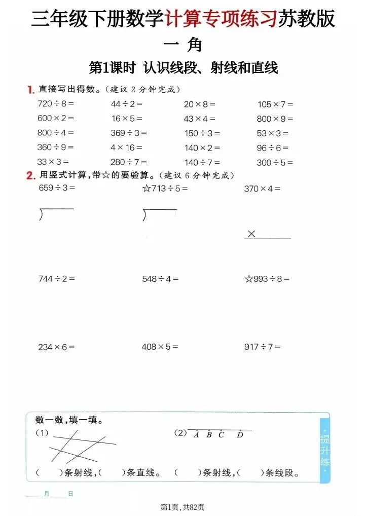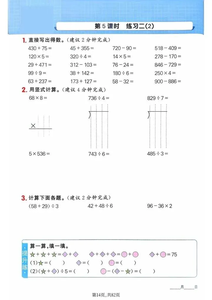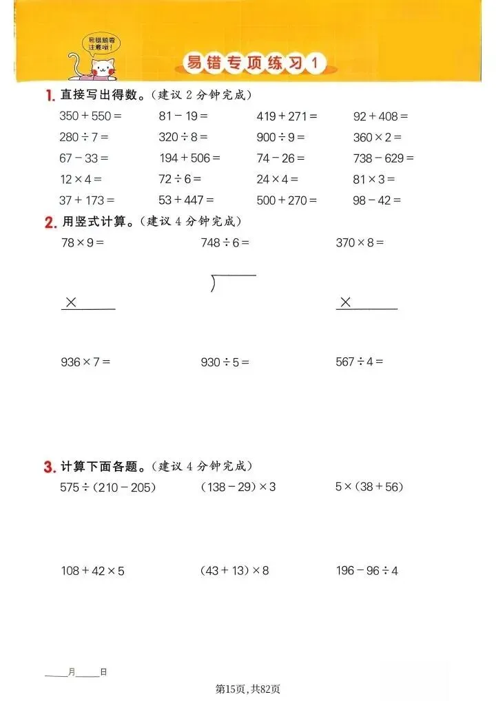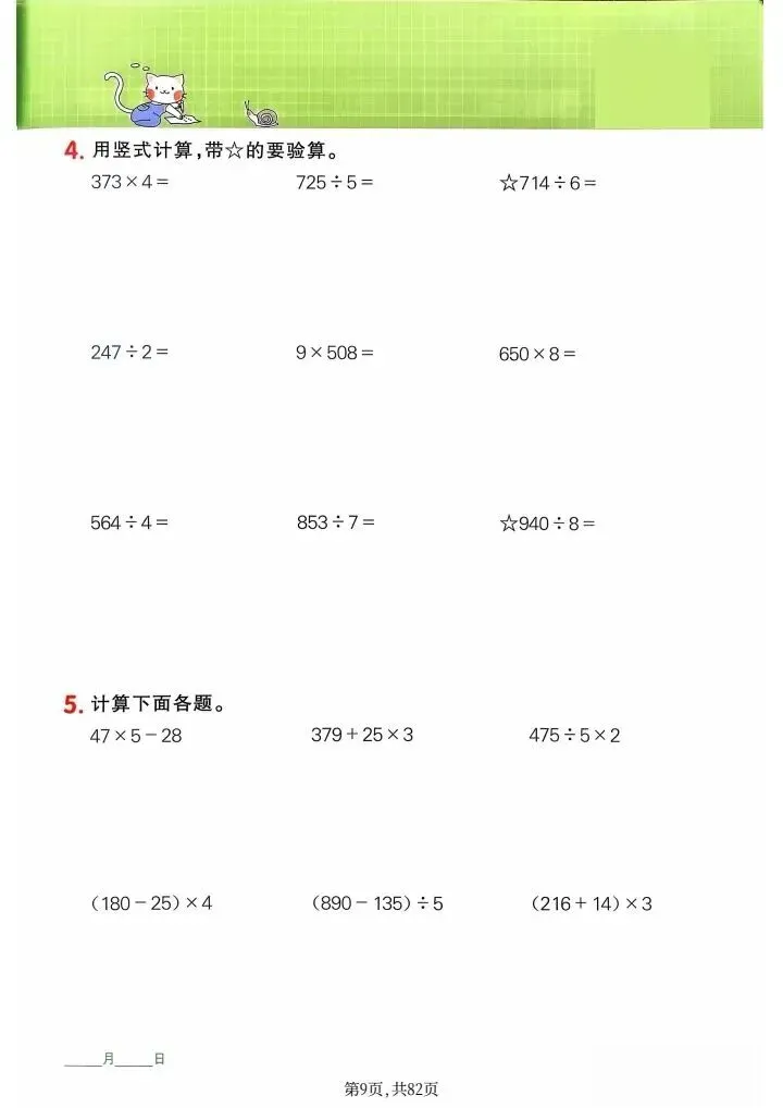 三年级下册数学计算是核心基础,很多孩子口算慢、竖式易出错,这套专项练习专门针对计算薄弱点设计,每天练10分钟,计算能力快速提升。