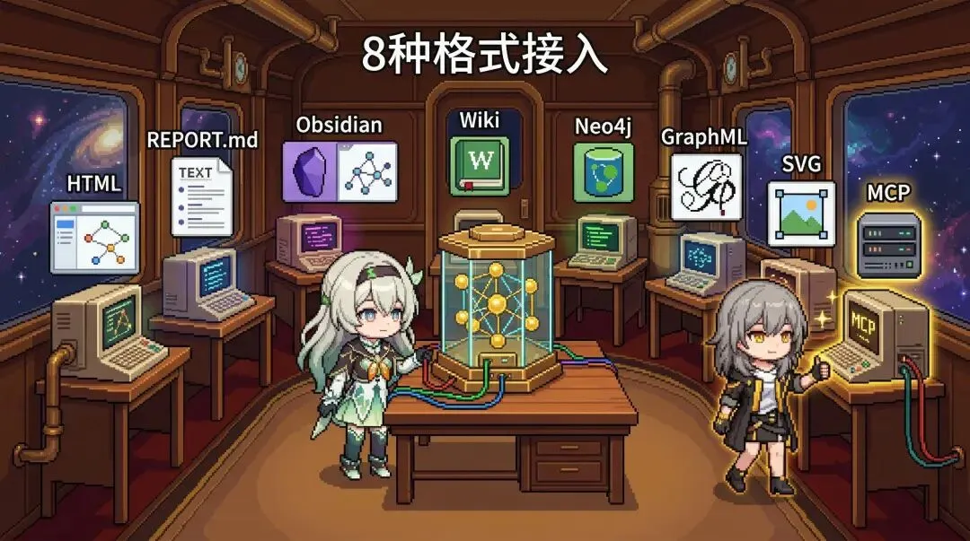 - 支持 8 种导出格式,包括 Obsidian Vault、Neo4j、MCP 服务器,能直接接入你现有的工具链