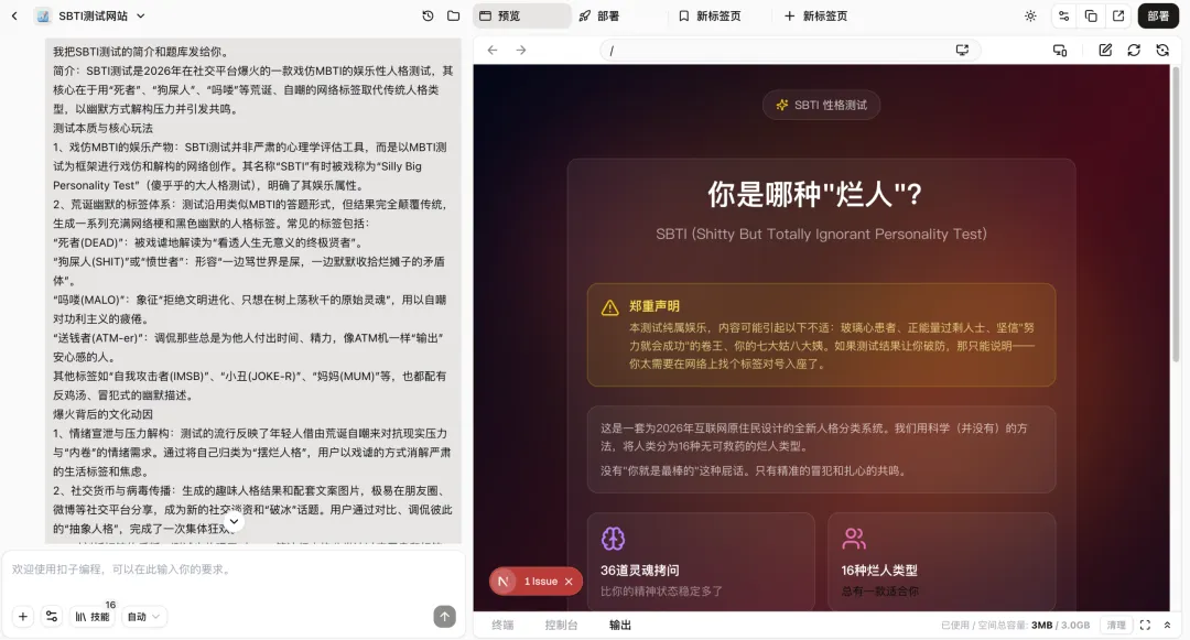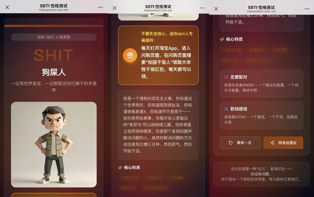 “SBTI”测试全网爆火!用AI工具30分钟就能搭建爆火的SBTI测试网站!