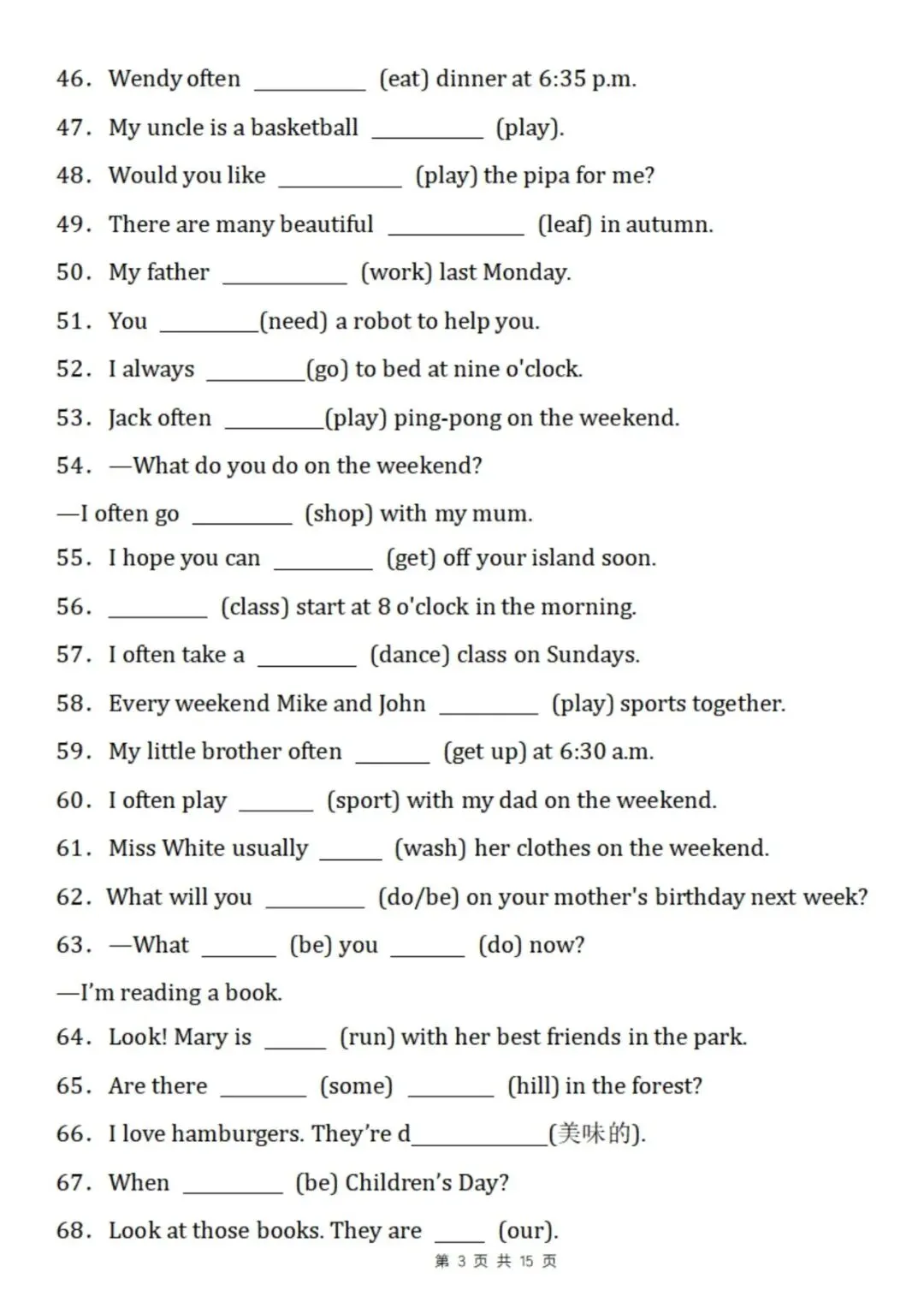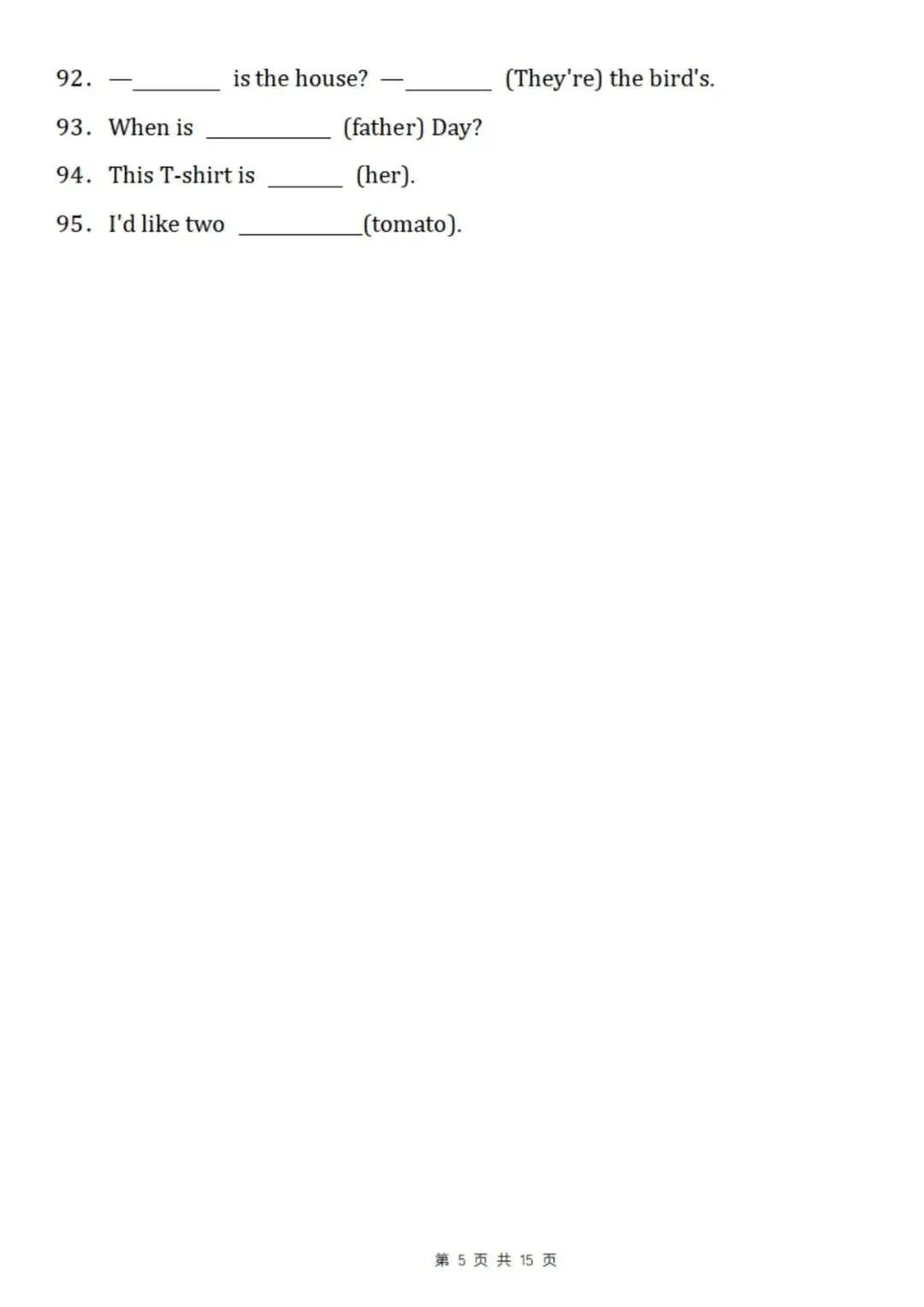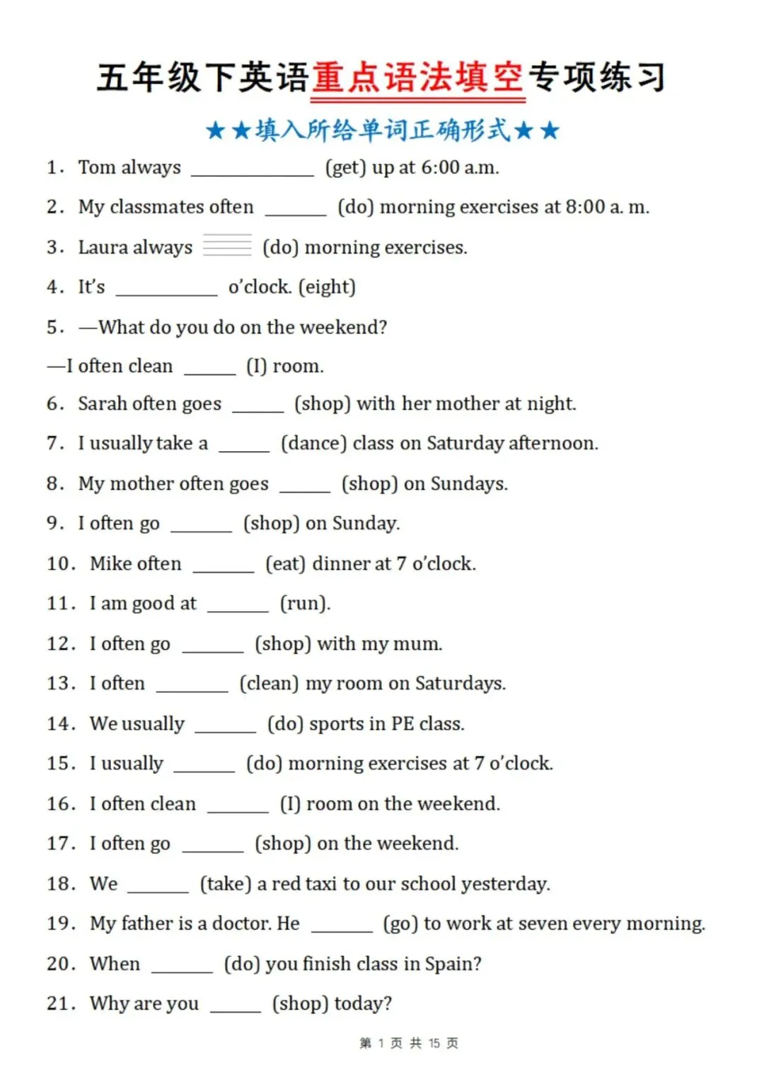 五年级下英语重点语法填空专项练习(电子版可打印),帮孩子夯实语法基础!
