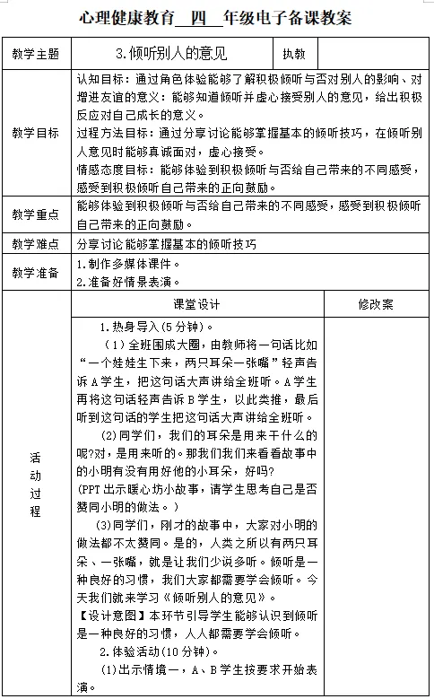 【电子版】2026春 苏科版小学四年级心理健康 教育全册 教案+课件+计划(全套下载) 可编辑打印