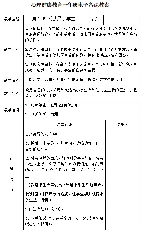 【电子版】2026春 苏科版小学一年级心理健康 教育全册 教案+课件+计划(全套下载) 可编辑打印