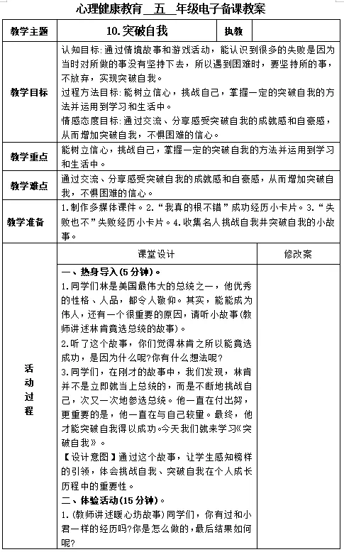 【电子版】2026春 苏科版小学五年级心理健康 教育全册 教案+课件+计划(全套下载) 可编辑打印