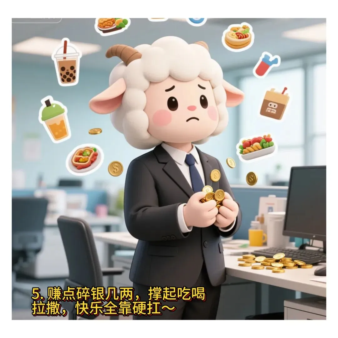 5. 上班的终极意义:赚点碎银几两,撑起吃喝拉撒,快乐全靠硬扛~