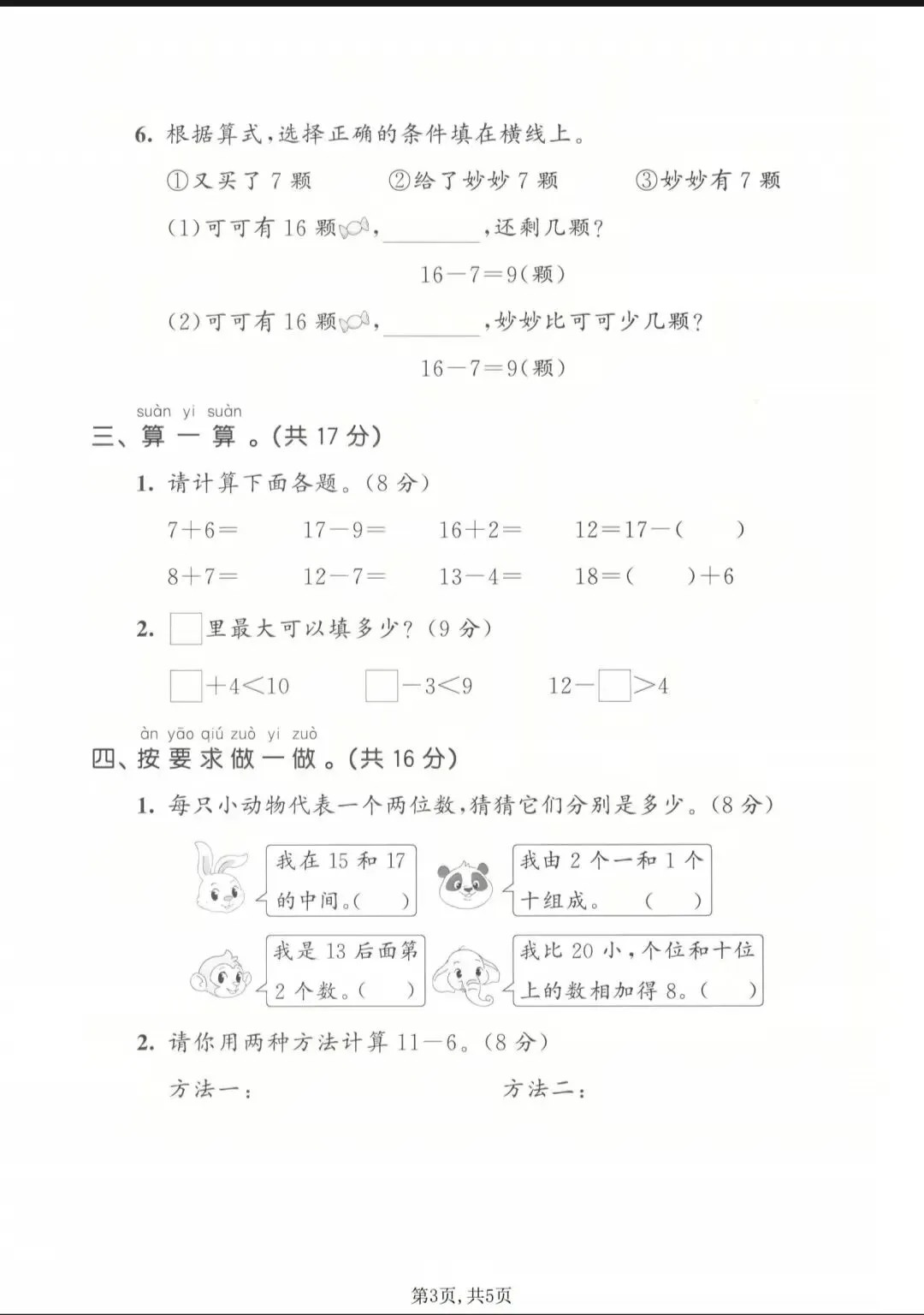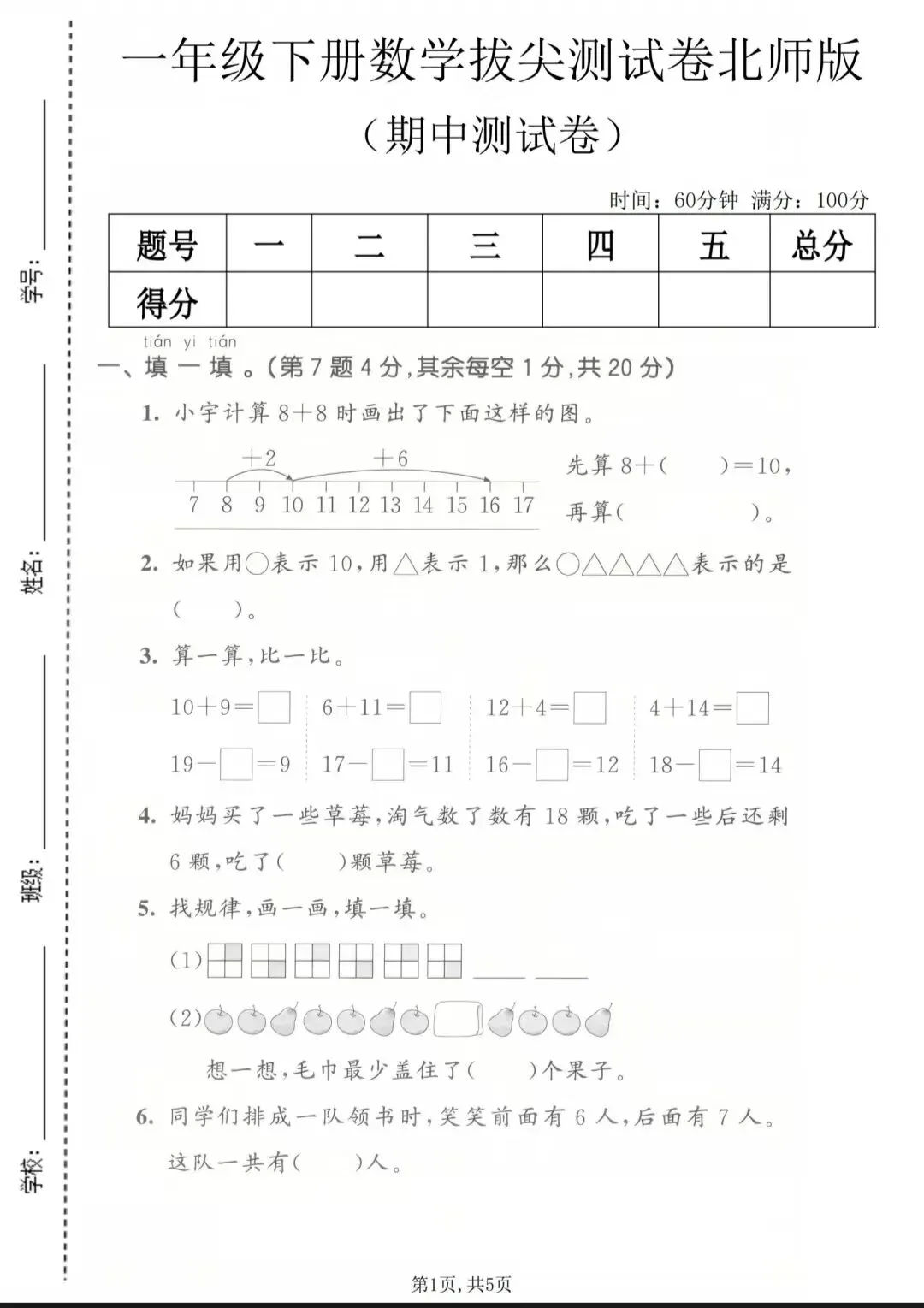一年级下册数学期中拔尖试卷,可打印 一年级下册数学拔尖检测卷,需要的家长赶紧打印出来给孩子练一练吧! 领取更多学习资料: ①:点一点右下角的“👍”和“❤️”! ②:左下角↓点“关zhu” ③:在公众号对话框回复:3663