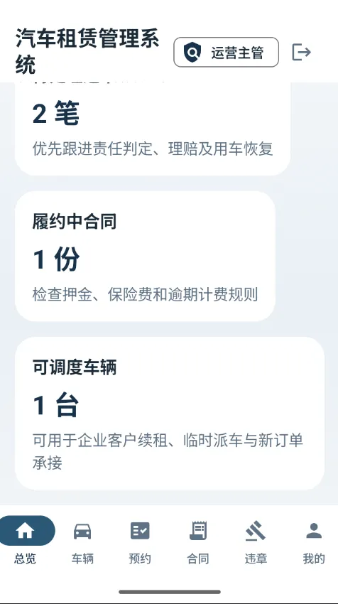 • 车辆状态管理:实时更新和追踪车辆的租赁状态(如可用、已租、维护中等)。 -