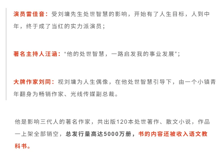 他受邀到中国传媒大学、厦门大学等高校演讲,观众挤满会场,站着也要听他讲处世法则;被请到纽约圣若望大学、圣文森学院等名校授课,名声响彻全球。