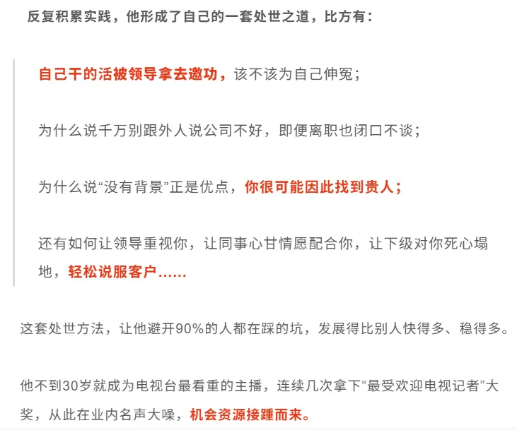 每当遭人算计、排挤,不小心得罪了人,或观察到别人犯错,他都会一一记录下来;再观察处世圆通的前辈怎么做,总结出相应的处事方法,以防再次犯傻。