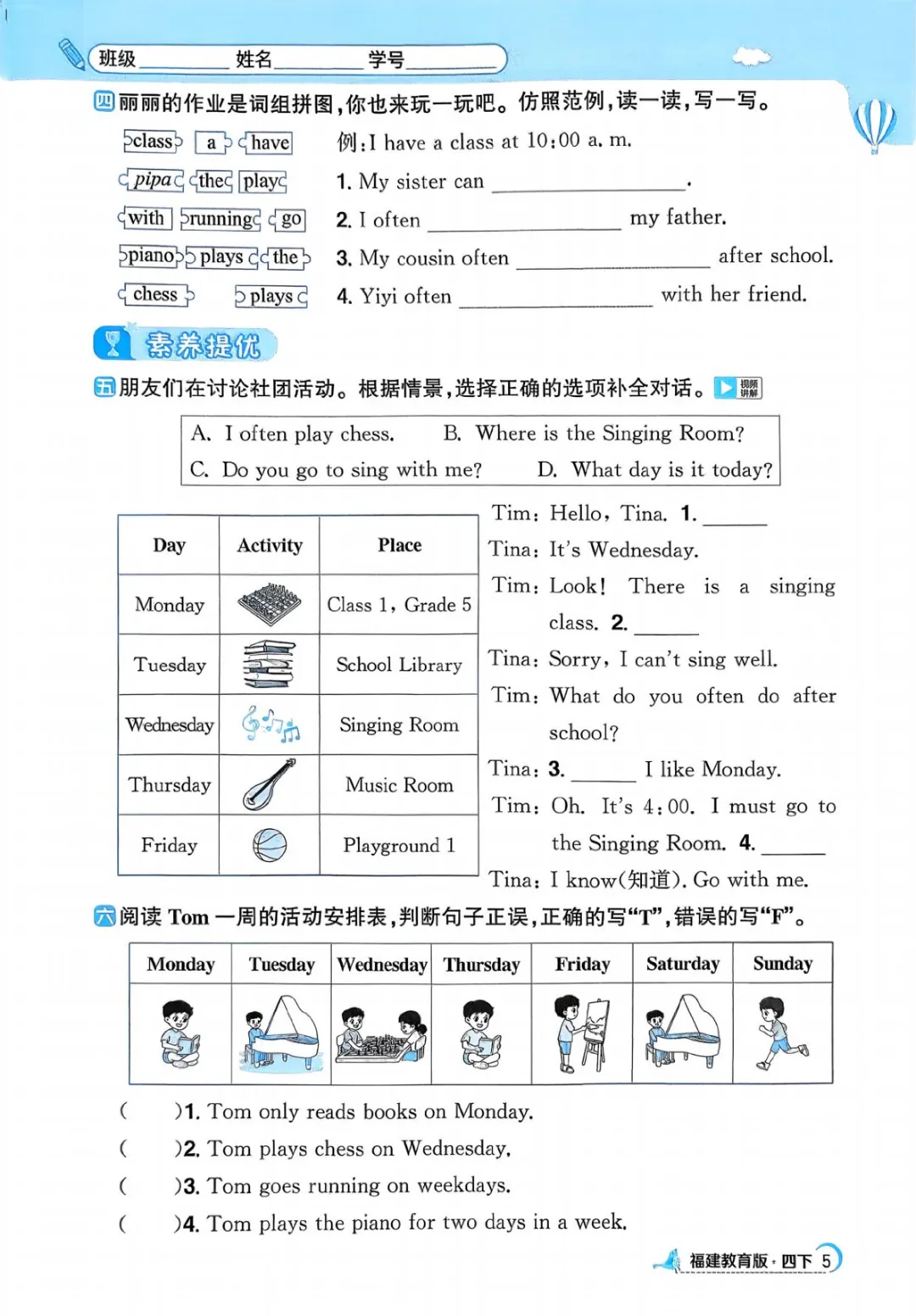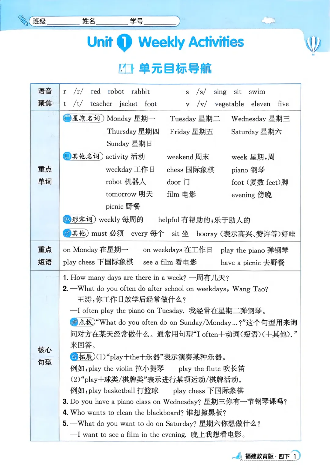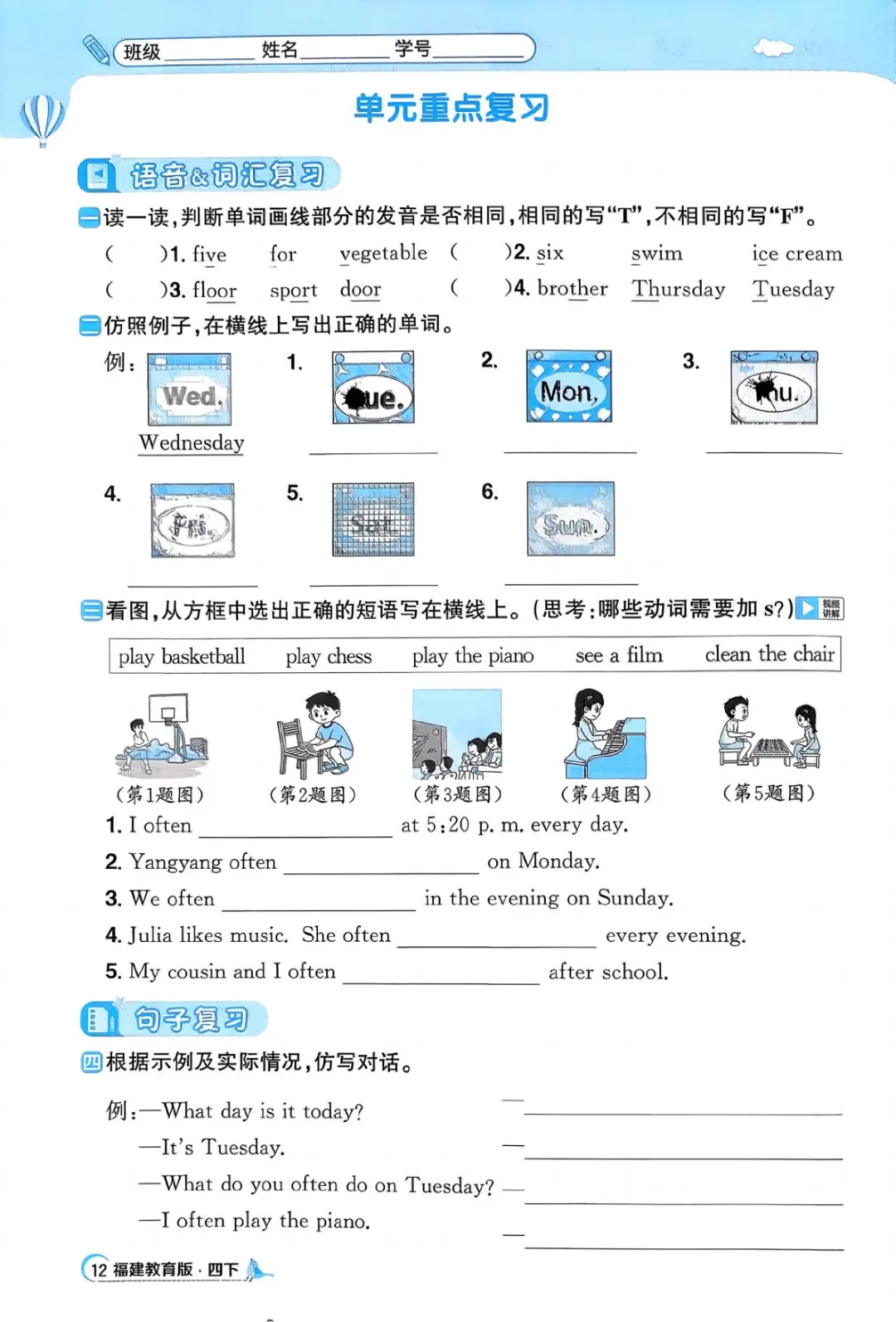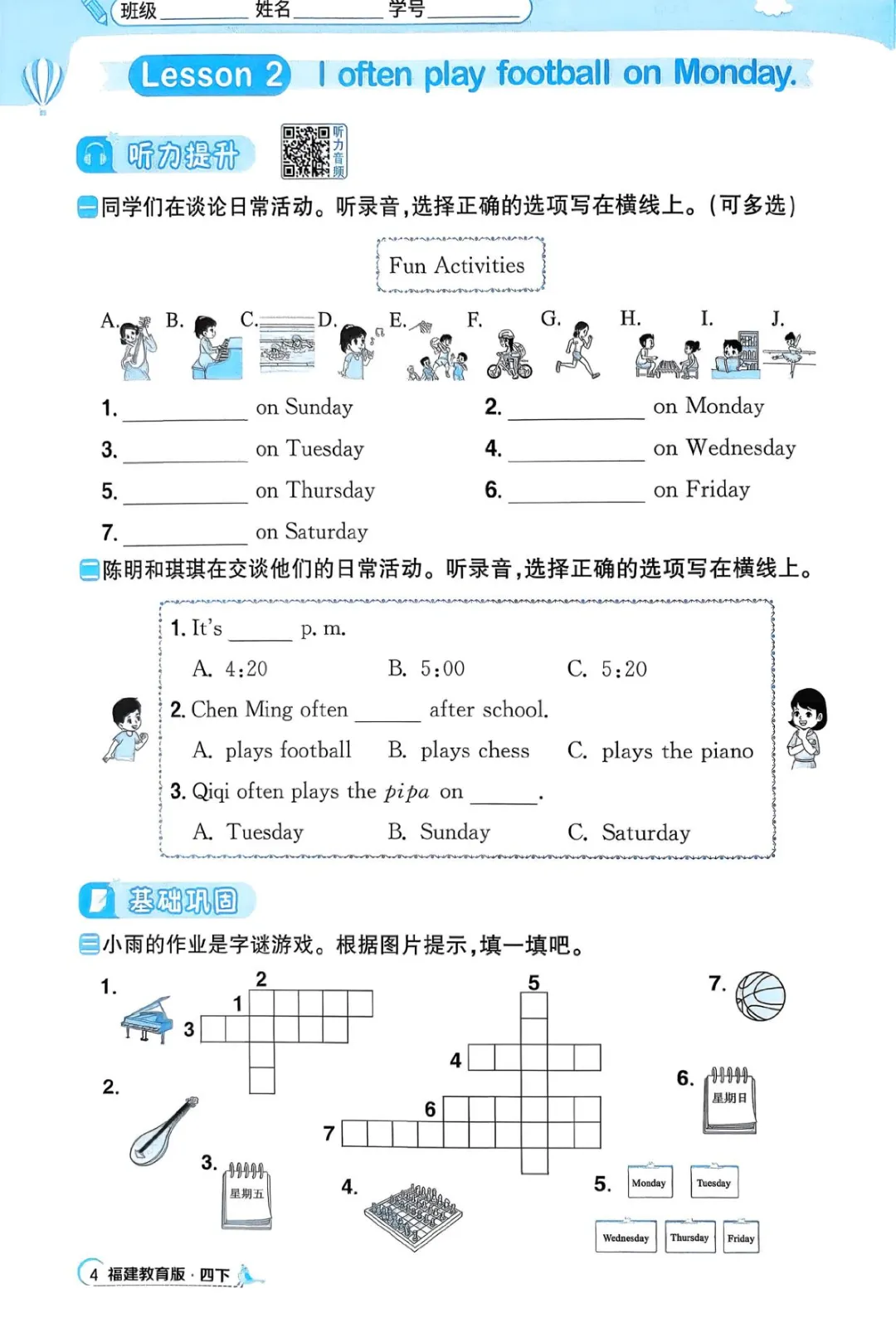2026年四年级下册英语课课练(电子版可打印)