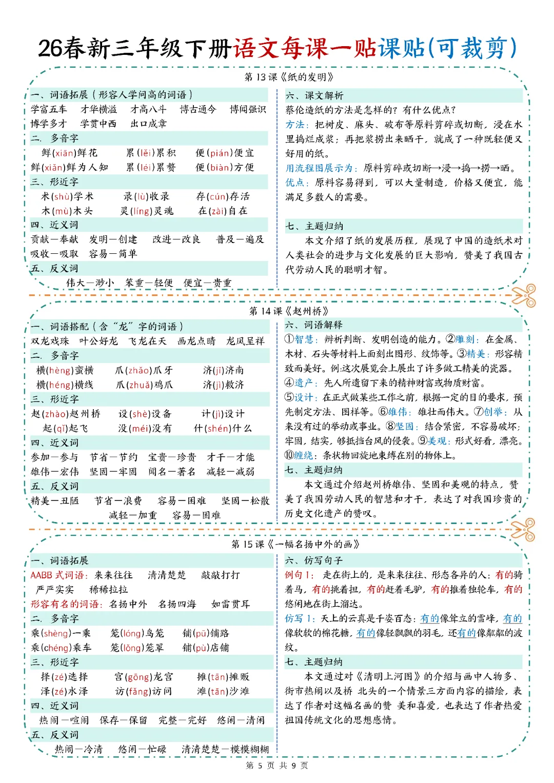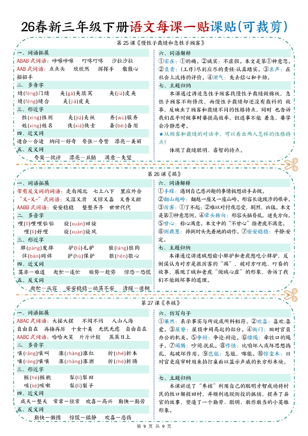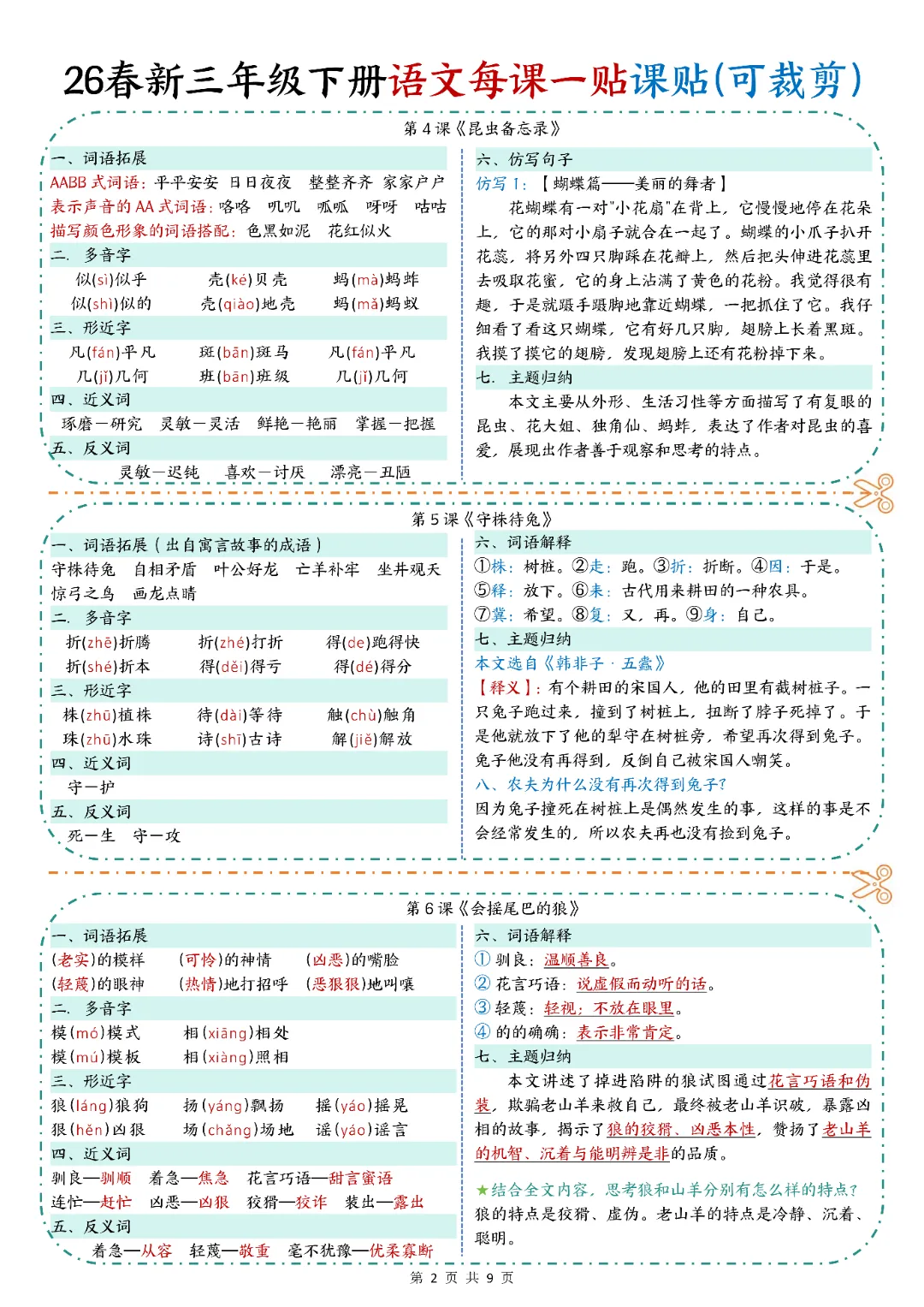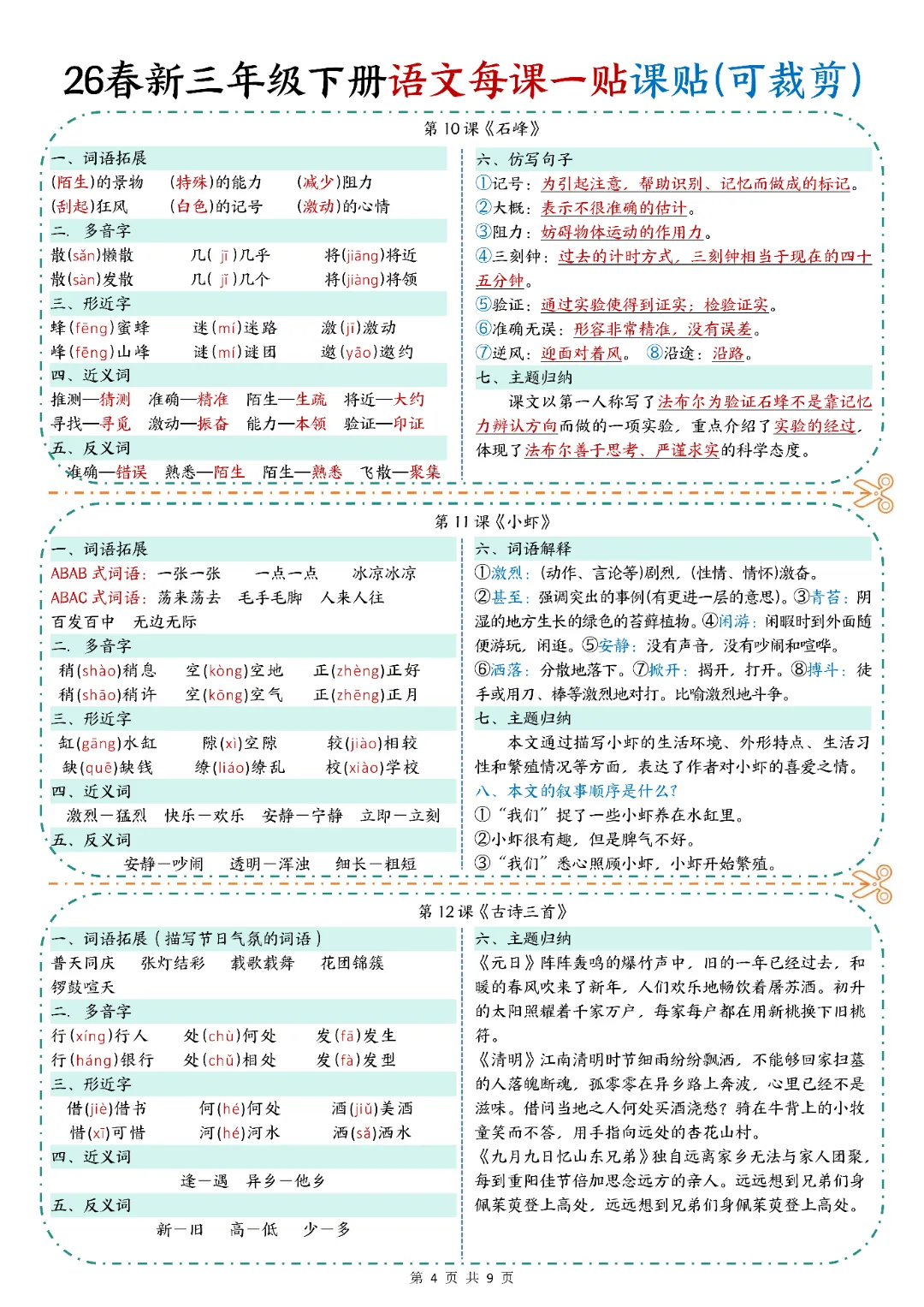 2026春人教统编版三年级下册语文《每课一贴》,电子版可打印