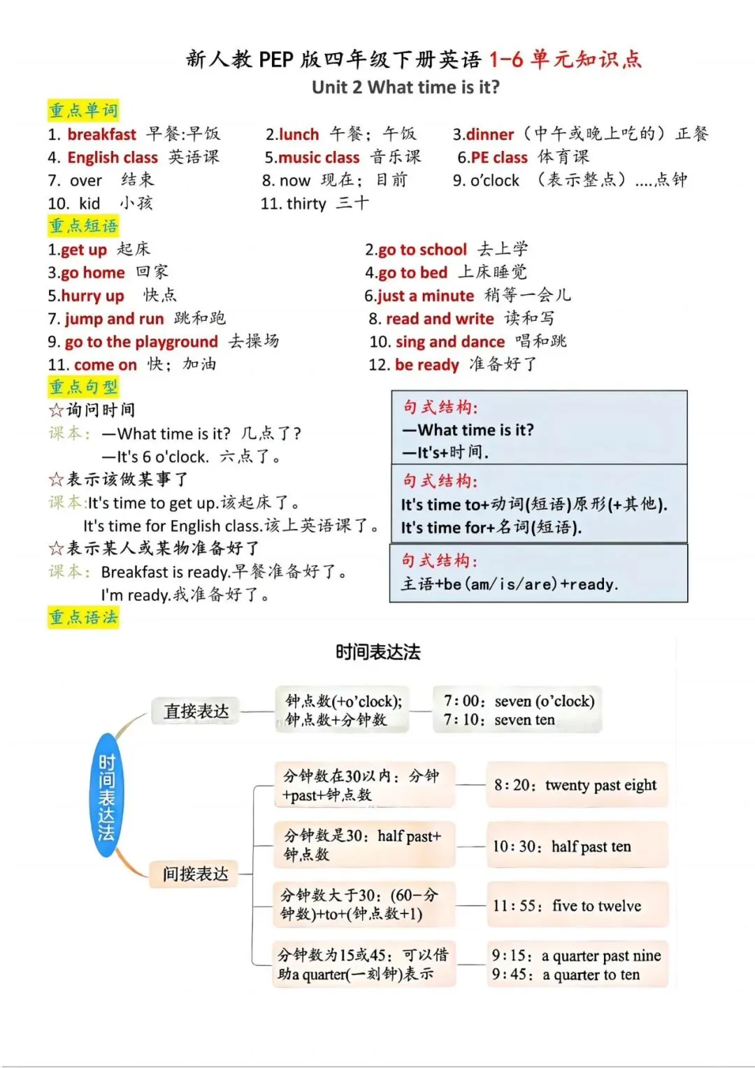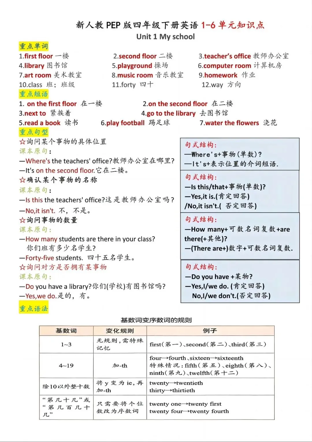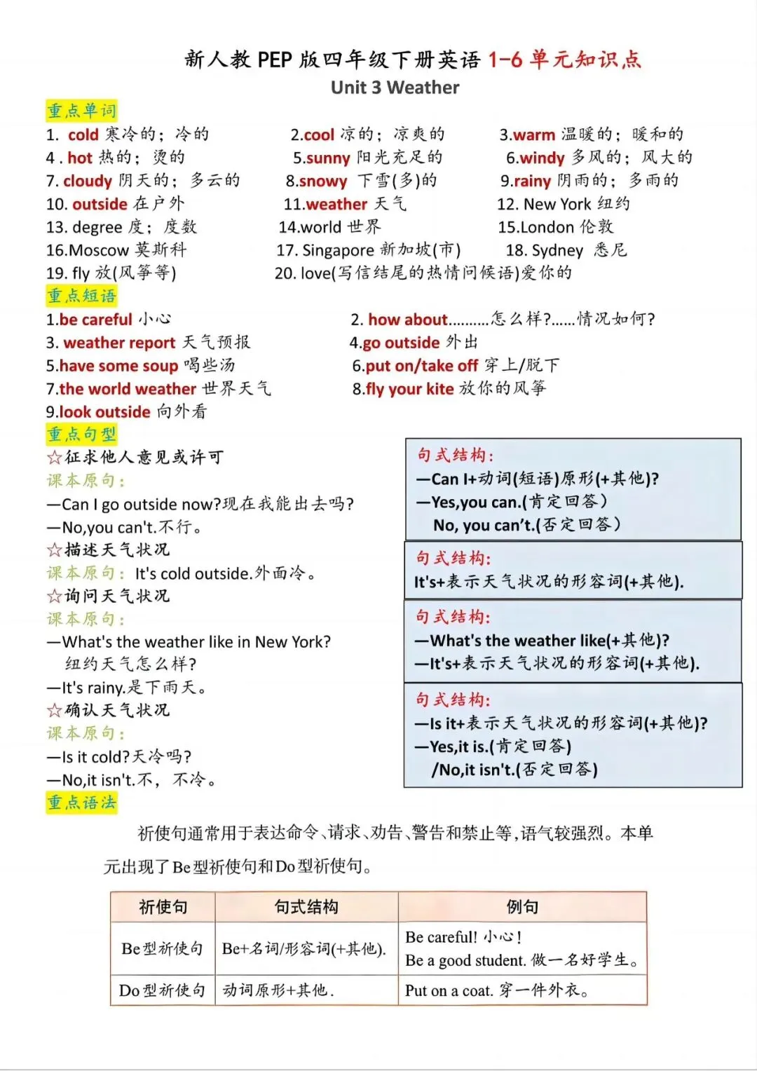 [爱心]「四年级(下)英语1-6单元知识点汇总+基础练习《人教版PEP》.pdf」