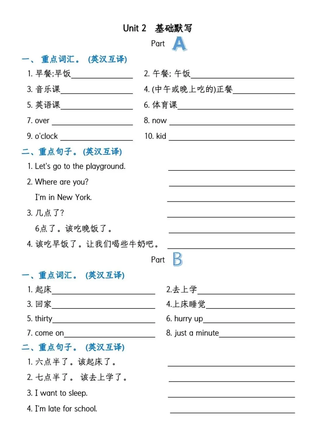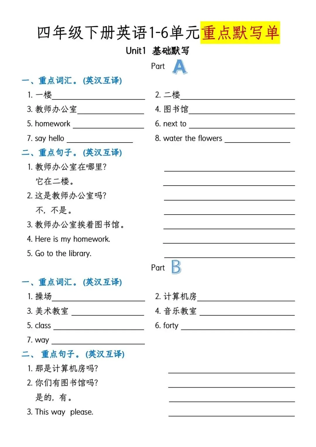 四年级下册人教PEP版英语1-6单元知识点总结+基础默写练习(期中期末复习),可下载可打印