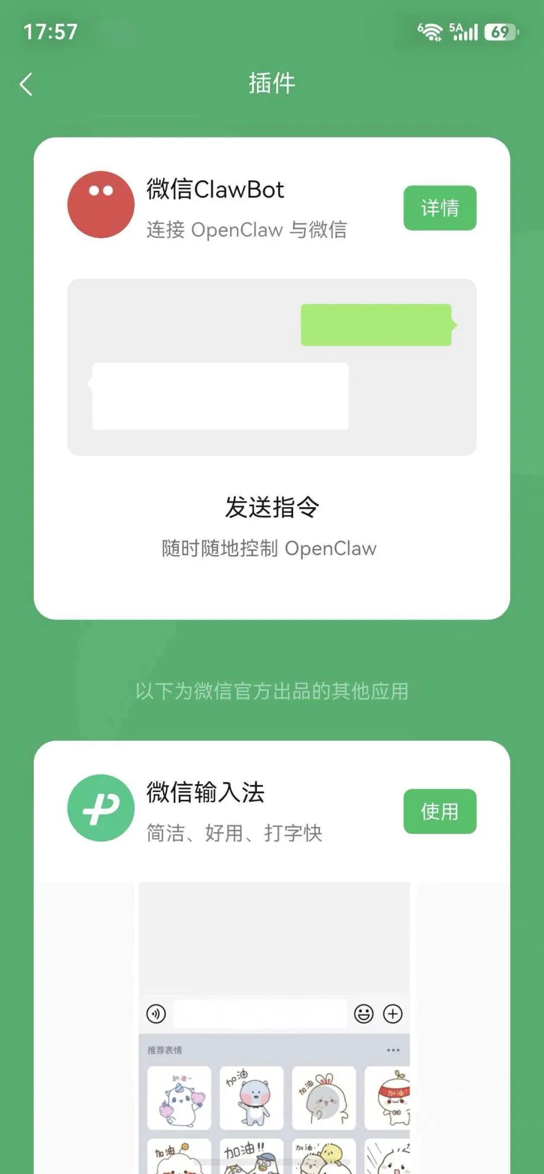 微信最新版本已经支持 ClawBot 插件,可以直接连接 OpenClaw 与微信。