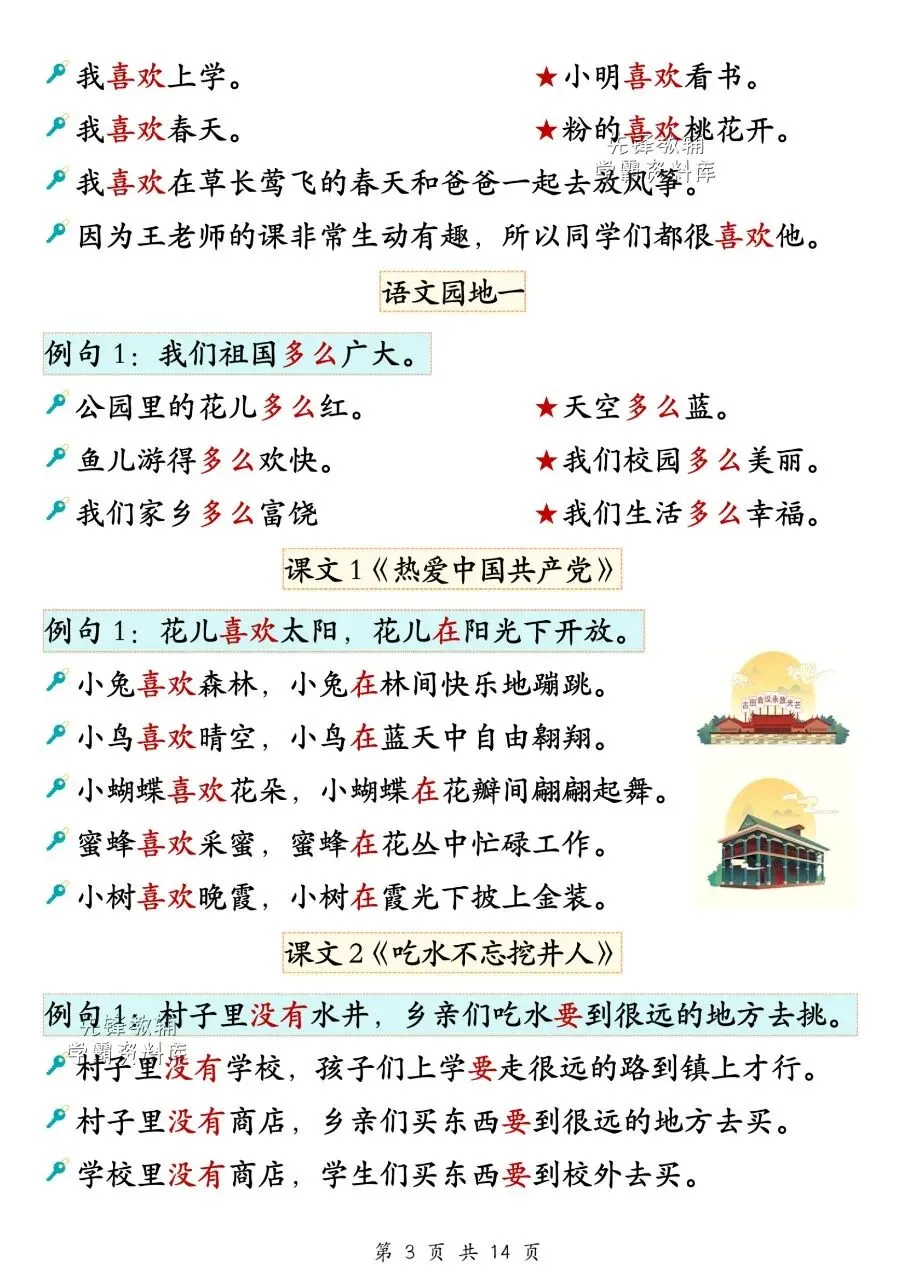 – 每课配例句+仿写模板,简单好记,适合低年级练习与考试复习。
