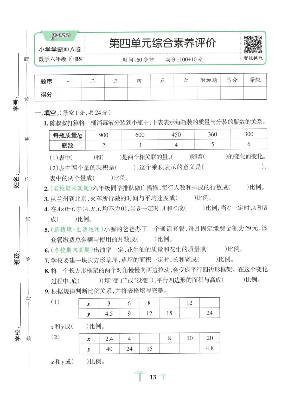 2026春六年级下册北师大版数学《单元素养评价卷+期中期末真题测试卷+专项归类复习卷》(共18套,含答案),完整可打印