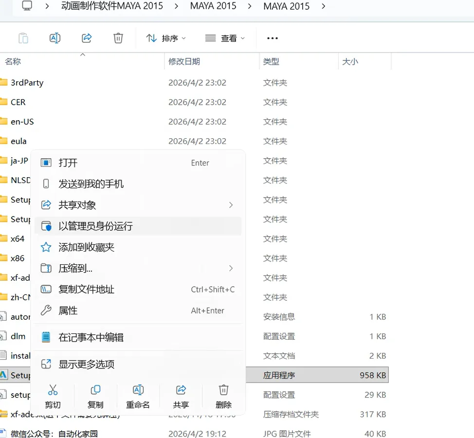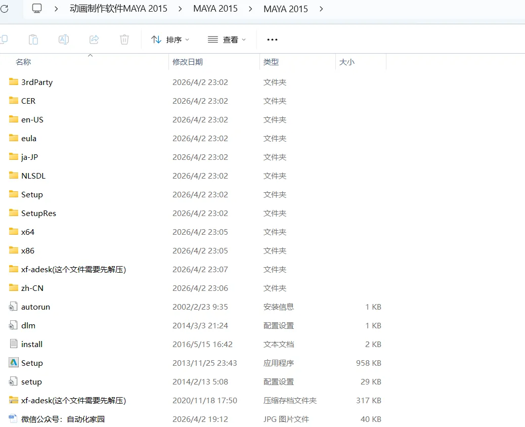 2.15,打开解压后的文件夹,双击打开【动画制作软件MAYA 2015】->【
