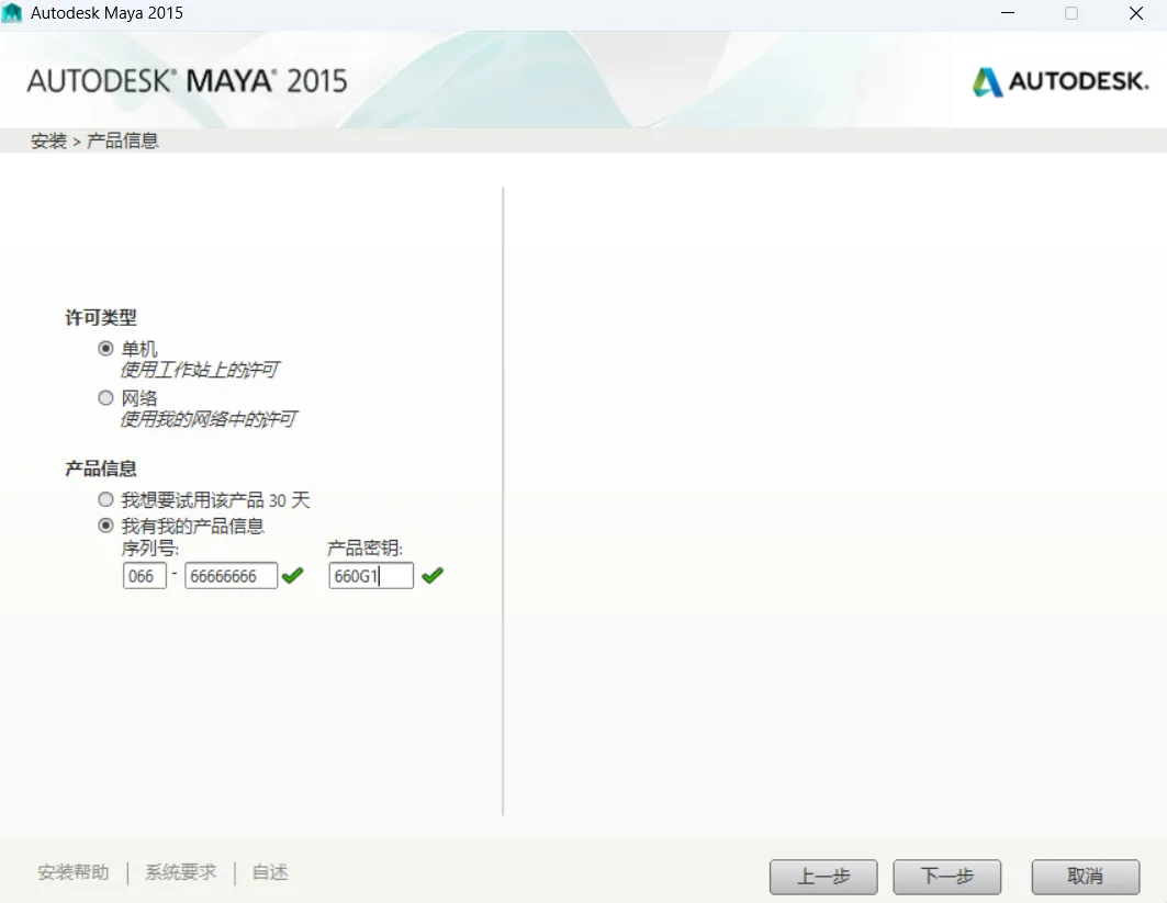 2.7,输入序列号【066-66666666】、产品密钥【660G1】,点击【下一步】。