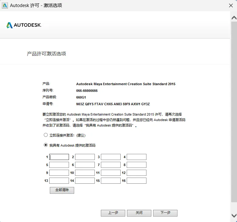2.14,选择【我具有Autodesk提供的激活码】,不要关闭此页面。