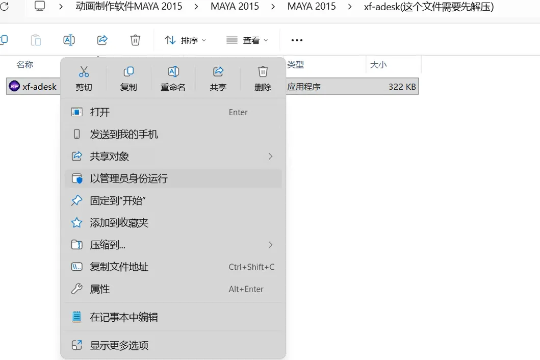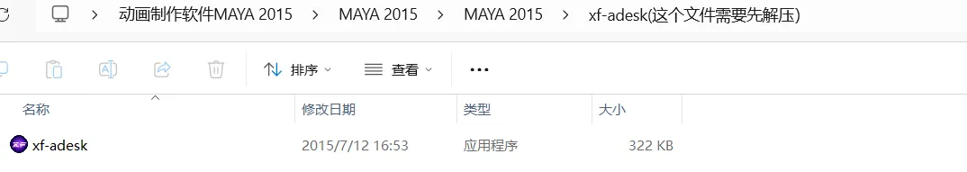 MAYA 2015】->【MAYA 2015】->【xf-adesk(这个文件需要先解压)】文件夹。