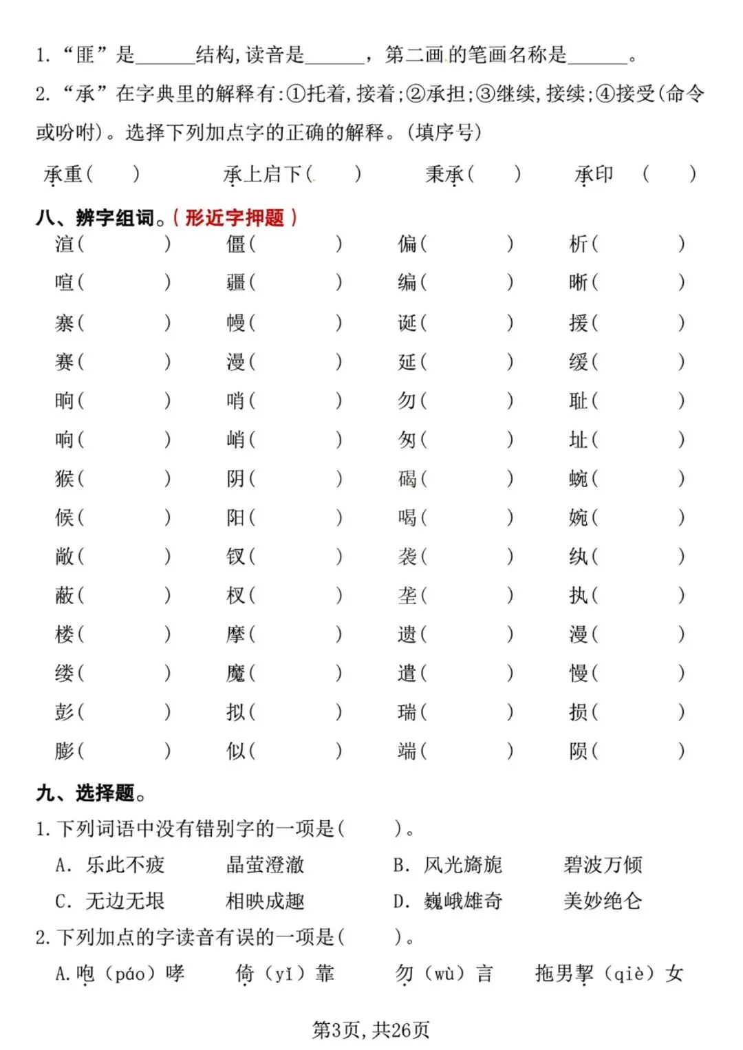 「26春语文1-6下《写字表笔顺组词字帖》」