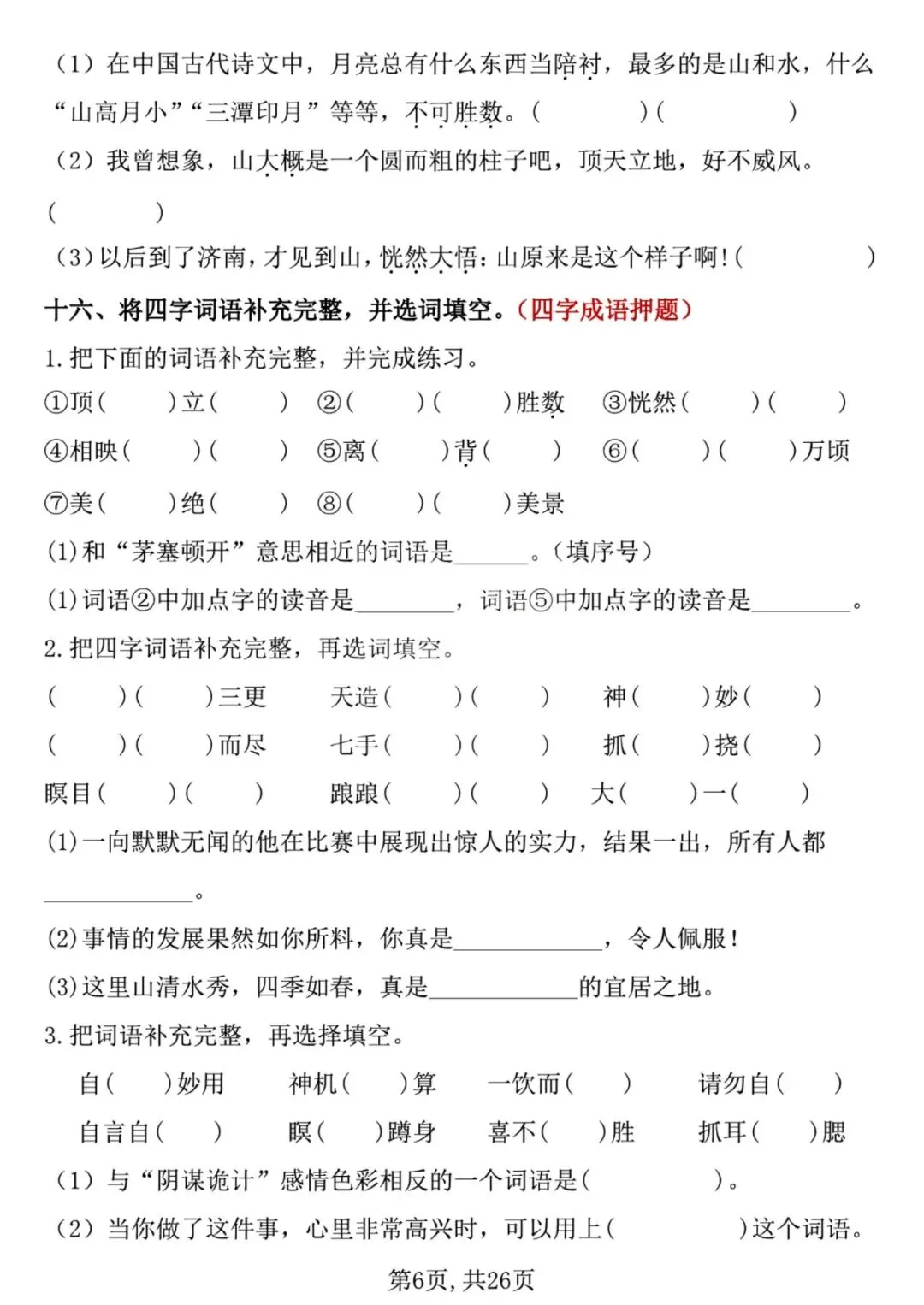 「 2026春1~6年级语文下册《基础知识一课一练》」