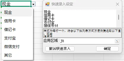 这个命令会把录入设定中的选项做成一个下拉框供快速选择。