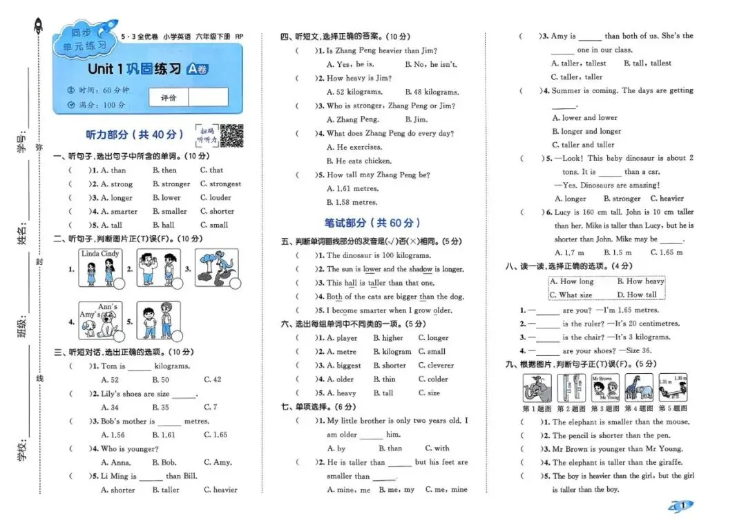 💎 26春 | 新人教PEP版六年级下册英语《期中期末模拟测试卷+全册单元测试卷+专项复习》(22套,有听力+答案),这套资料包含全册单元测试、专项复习与期中期末模拟卷,覆盖单词、句型、语法等全册内容,帮助孩子同步巩固知识、针对性查漏补缺,提前适应考试题型,稳步提升英语应试水平!需要的家长抓紧时间领取一份,打印出来让孩子做一做、练一练吧!