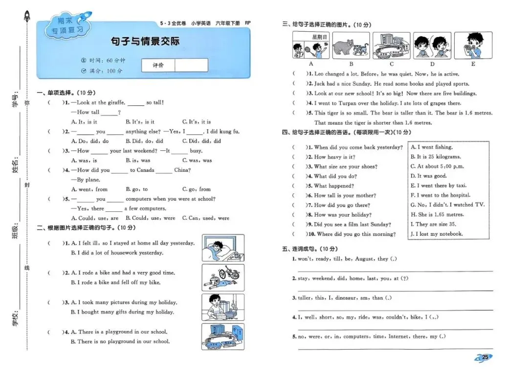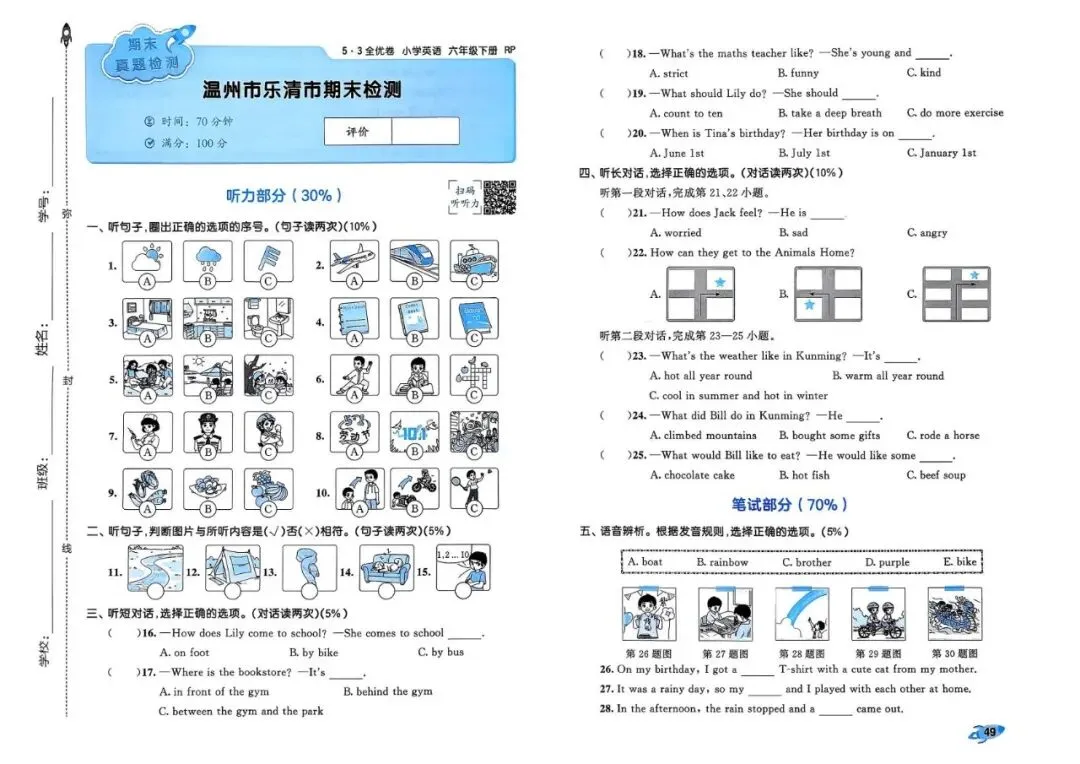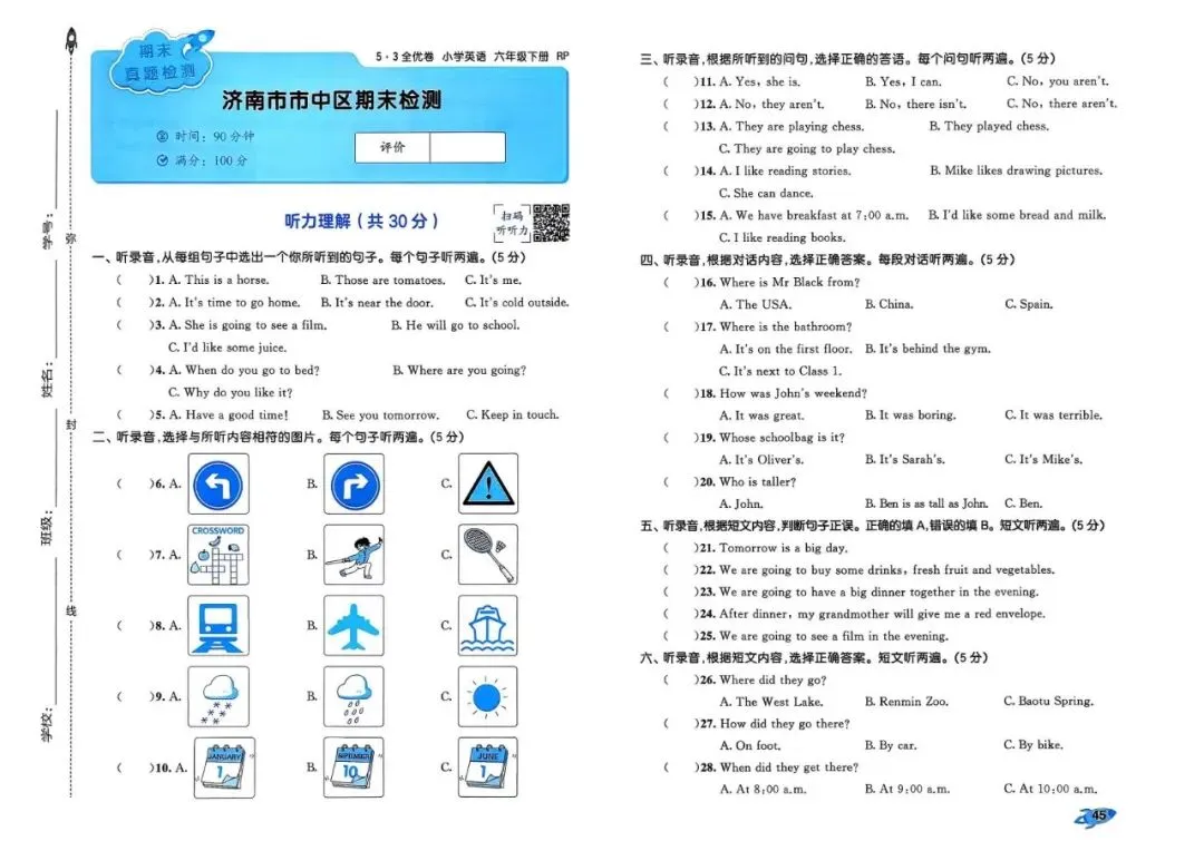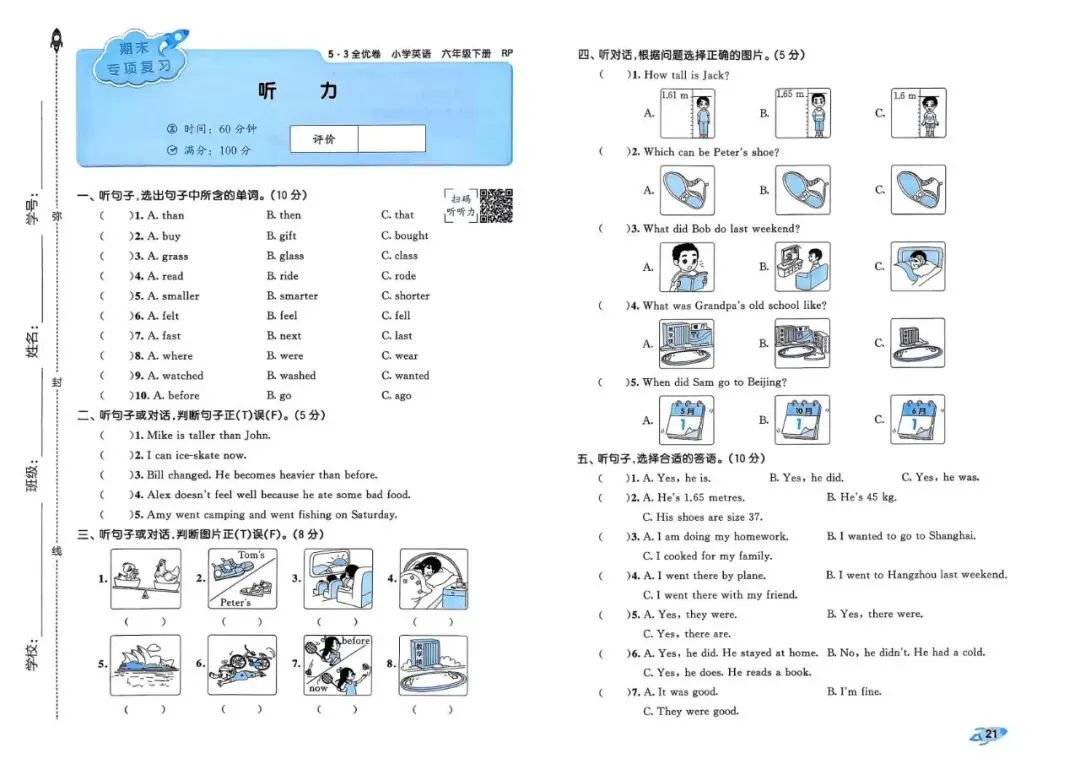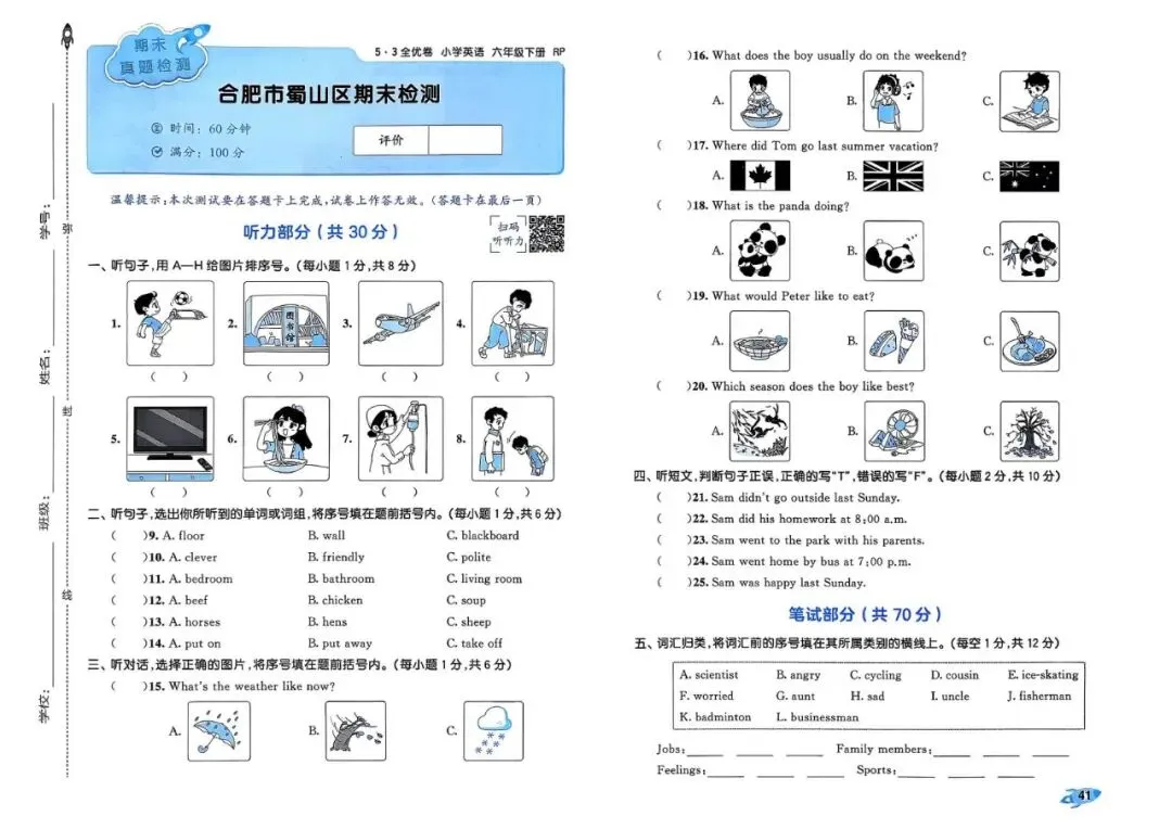 26春 | 人教PEP版六年级下册英语《期中期末模拟测试卷+全册单元测试卷+专项复习》(22套,有听力+答案),可打印
