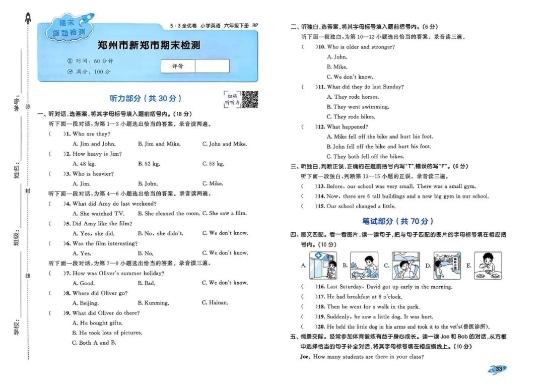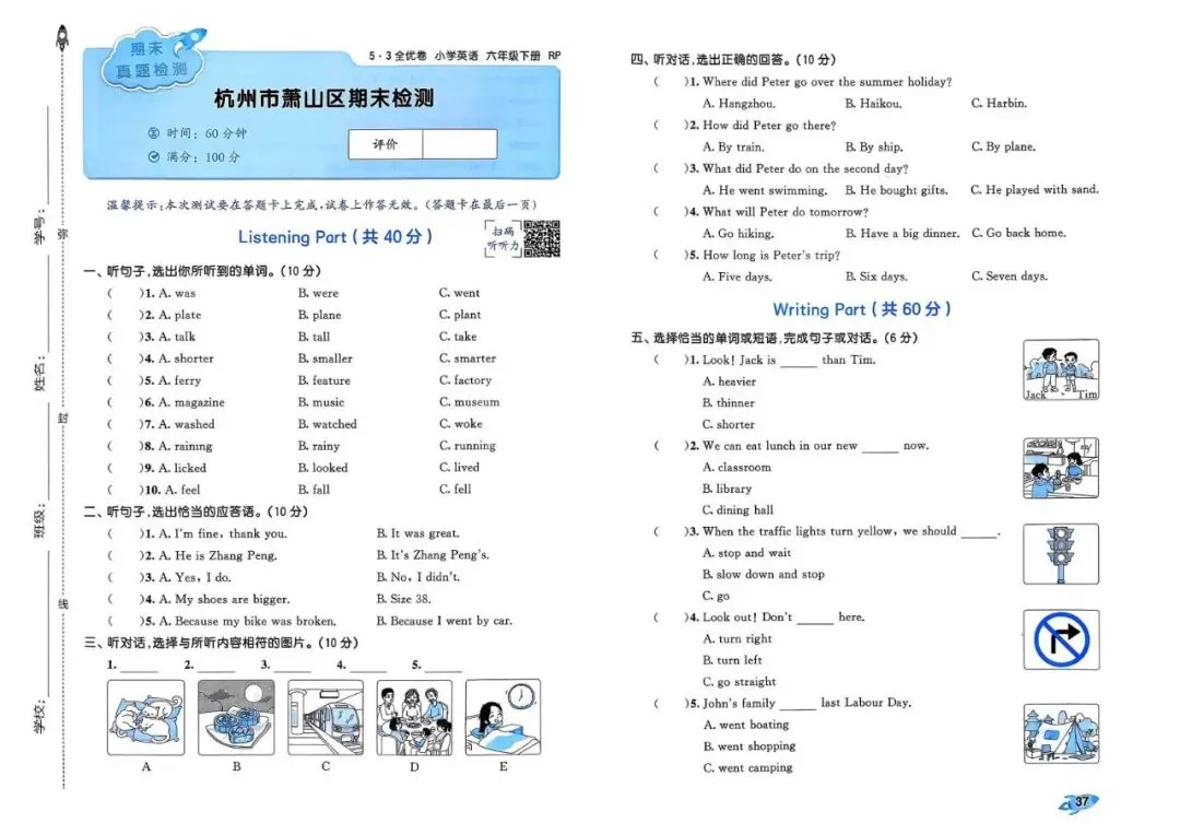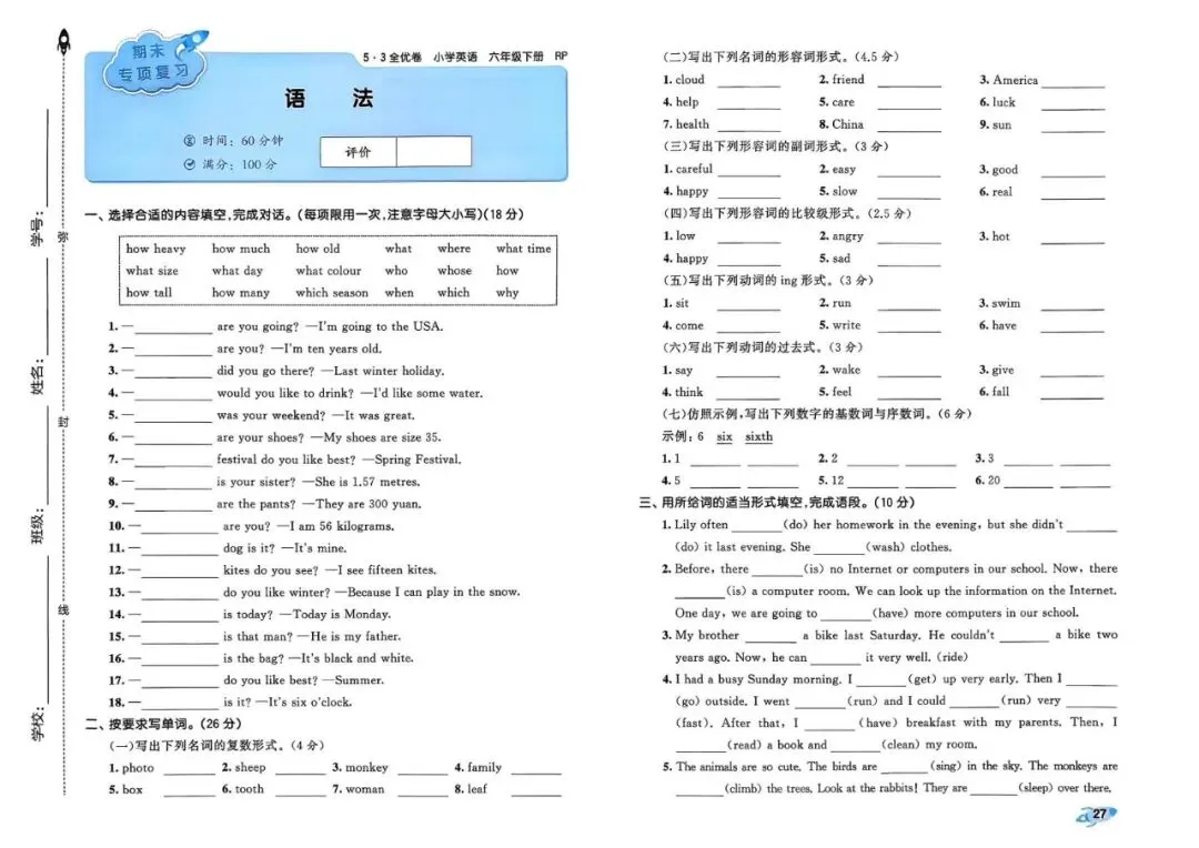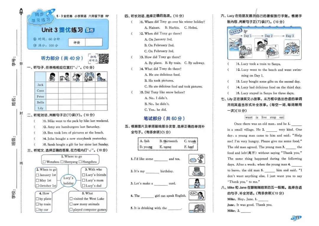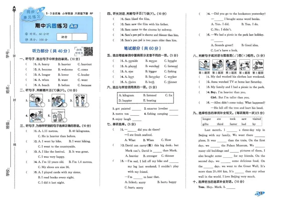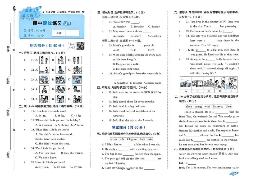 26春 | 人教PEP版六年级下册英语《期中期末模拟测试卷+全册单元测试卷+专项复习》(22套,有听力+答案),可打印