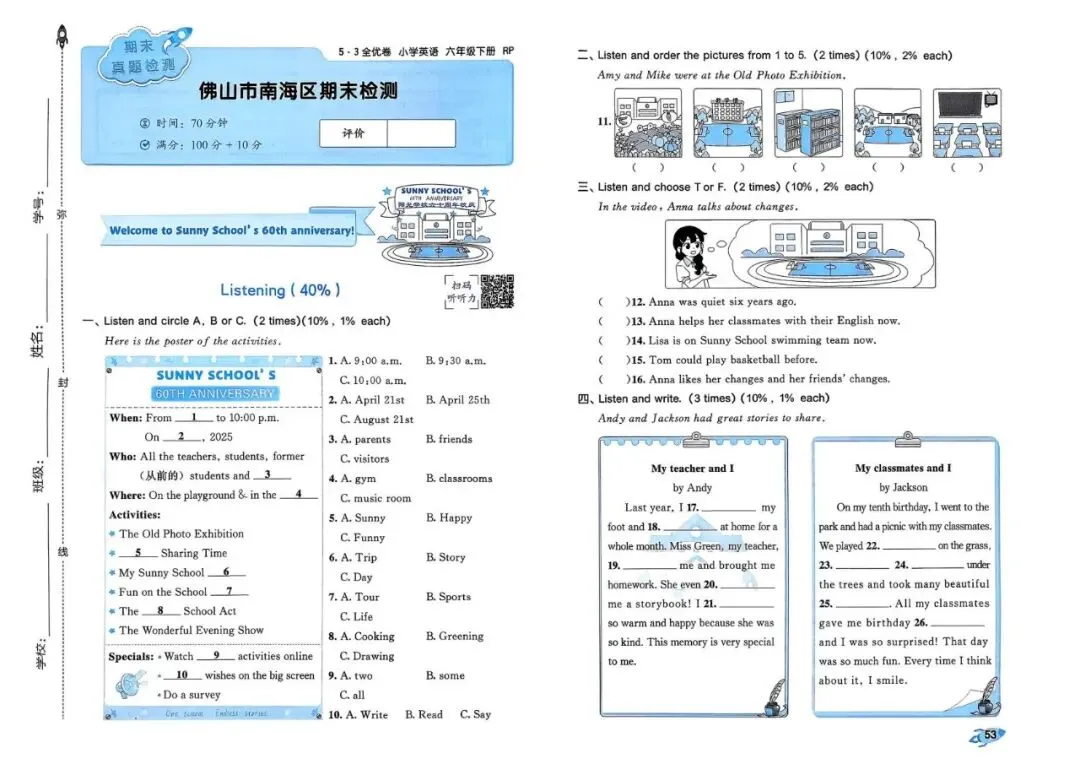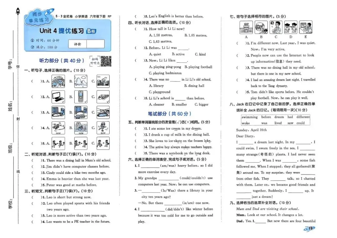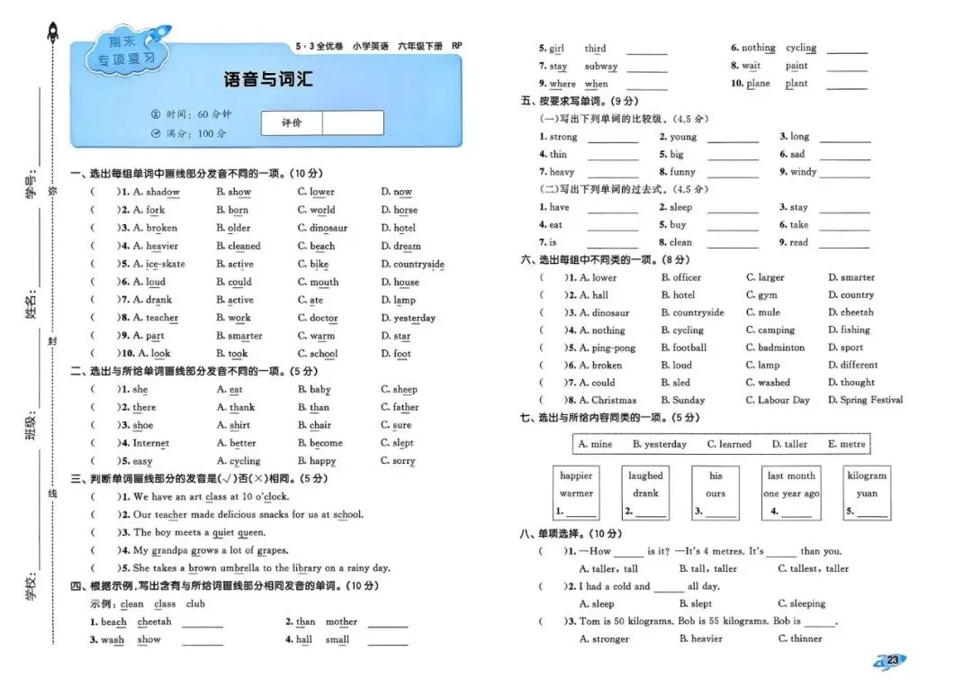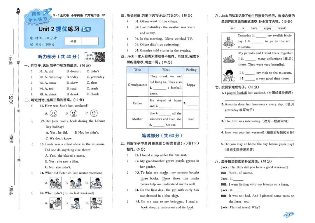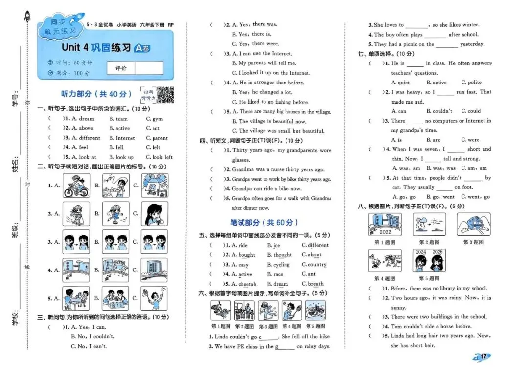 26春 | 人教PEP版六年级下册英语《期中期末模拟测试卷+全册单元测试卷+专项复习》(22套,有听力+答案),可打印