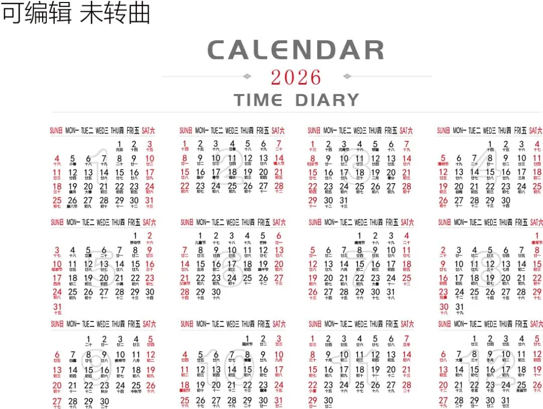 2026年历日历挂历台历AI CDR可编辑设计素材模板