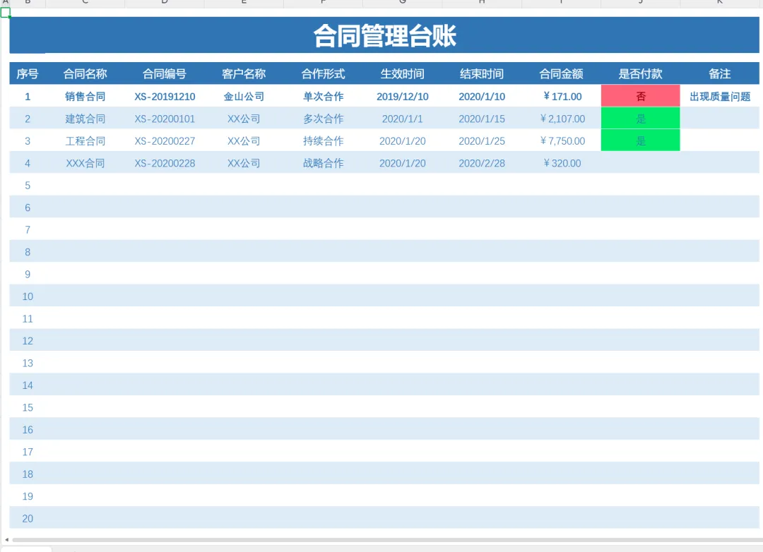 高效办公必备资料!小编整理了41款《合同管理台账》Excel 电子版 ,涵盖各类合同管理要点;清晰梳理合同信息,提升管理效率。我建议依据业务类型分类使用,定期更新数据,确保台账准确性与实用性。