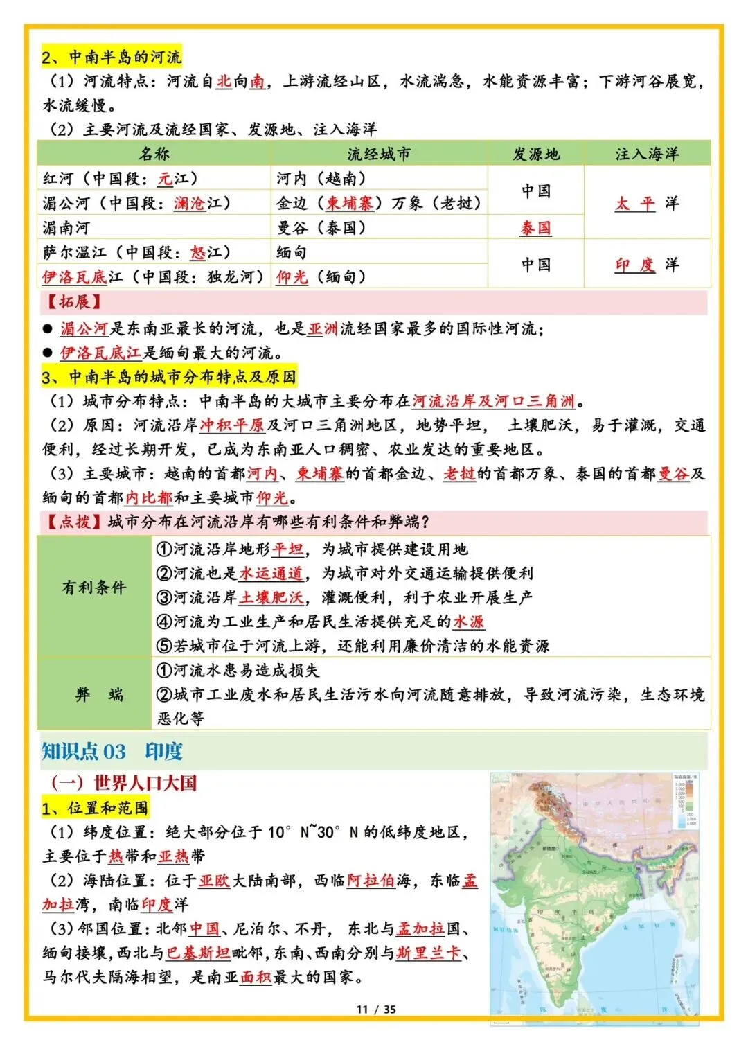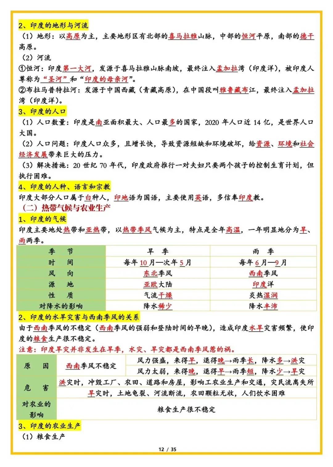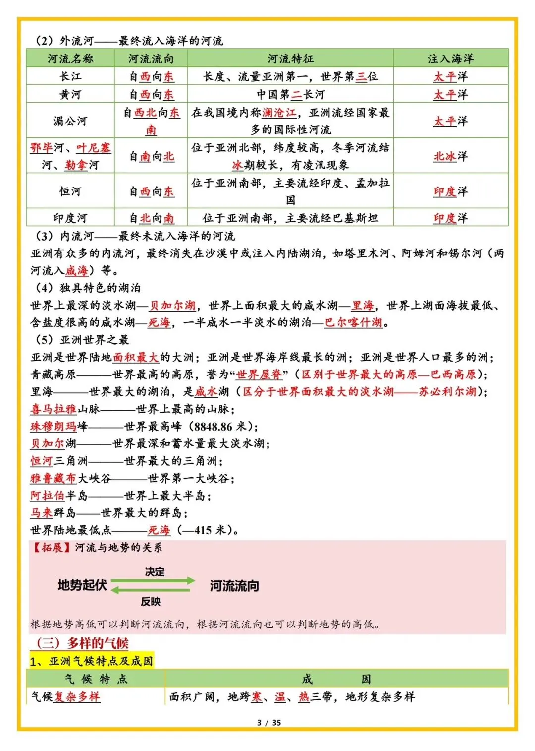 2026版七年级下册地理知识点背诵,可打印电子版!